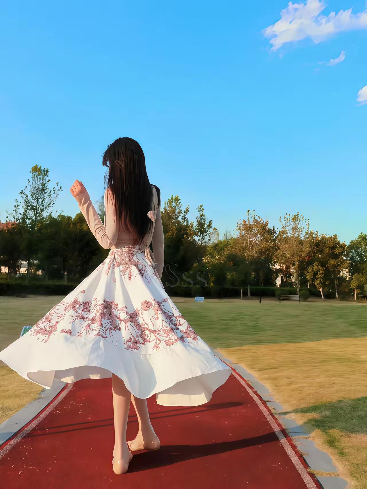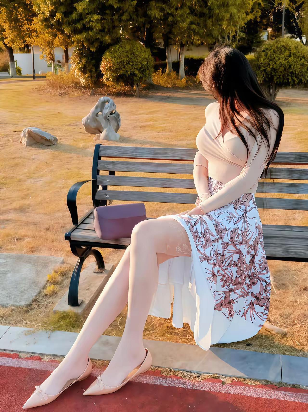 高冷美女身着黑色上衣搭配白色连衣裙,这组合简直yyds!黑色神秘深邃,凸显她的冷
