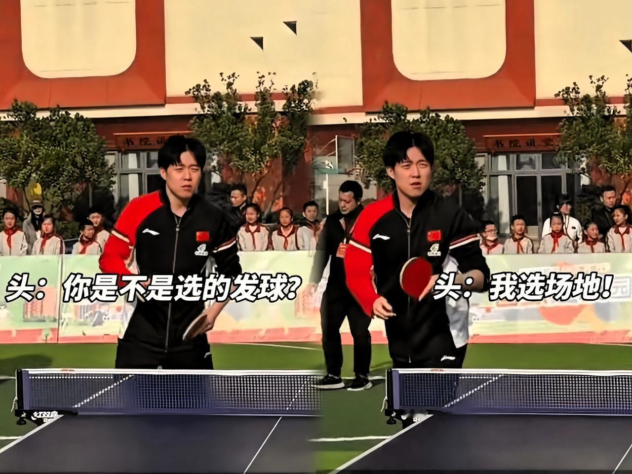 救命! 王楚钦这波幼稚操作直接满分! 跟小孩哥打球, 居然一本正经举手申请暂停: “等会儿等会儿! 你是不是选的发球? 那我选场地!” 那股认真劲儿简直笑不活了! 最绝的是,自己怕晒, 立马把太阳刺眼的那边换给小孩哥, 还一脸“为你好”地说: “这边光太晃,咱得换换!” 这小算盘打得噼啪响, 我在屏幕外都听得清清楚楚! 头哥: 胜负欲从娃娃抓起, 但防晒必须从我做起!