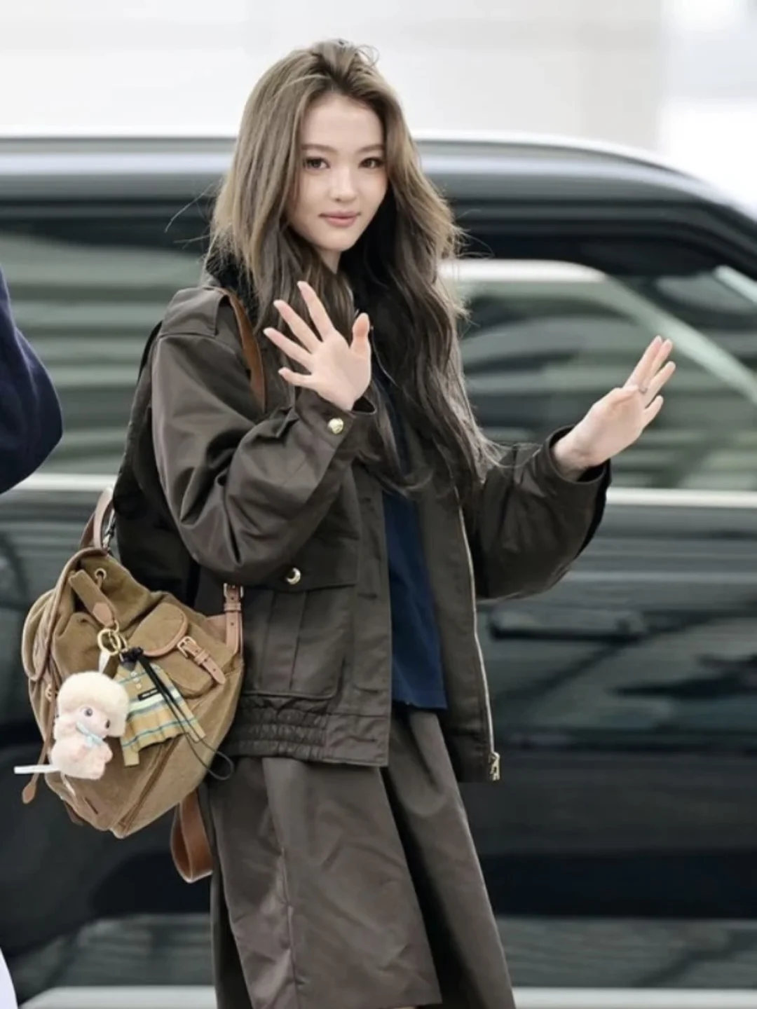 黑色短款面包服配紧身裙的“上暖下露”冬季穿搭