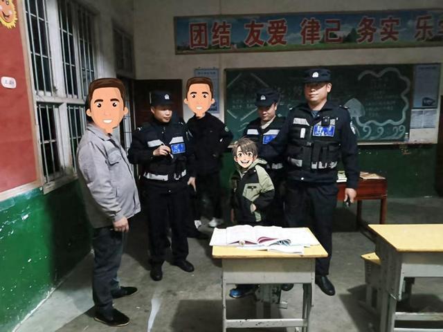 接警后,值班民辅警耐心安抚匡某情绪,并细致地询问孩子衣着特点和体貌特征等信息。了解情况后,民辅警迅速兵分两路追踪孩子行踪,一路沿着学校至回家的路线进行地毯式排查,一路调取学校周边的监控视频进行查找。经过2小时的不懈寻找,民辅警最终在教室里找到了那个小男孩——他正趴在课桌上认真地写作业。原来,小男孩因为这次考试没考好,害怕回家被父母责骂,放学走到家门口的路口时,犹豫再三,又悄悄绕了一段山路返回教室,独自写起了作业。