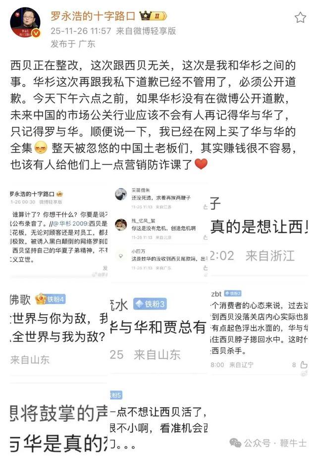 事件缘起华杉昨天在微博再次点评西贝事件,引发罗永浩回怼。