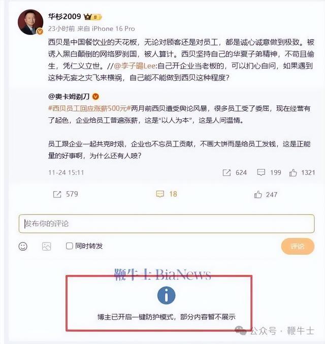 华杉称西贝被人算计,暗示罗永浩颠倒黑白。