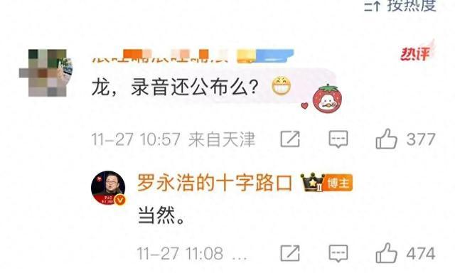 11月27日上午,罗永浩更新微博,评论区有网友问“录音还公布吗”,他回复“当然”,还透露华杉并未私下向他道歉。
