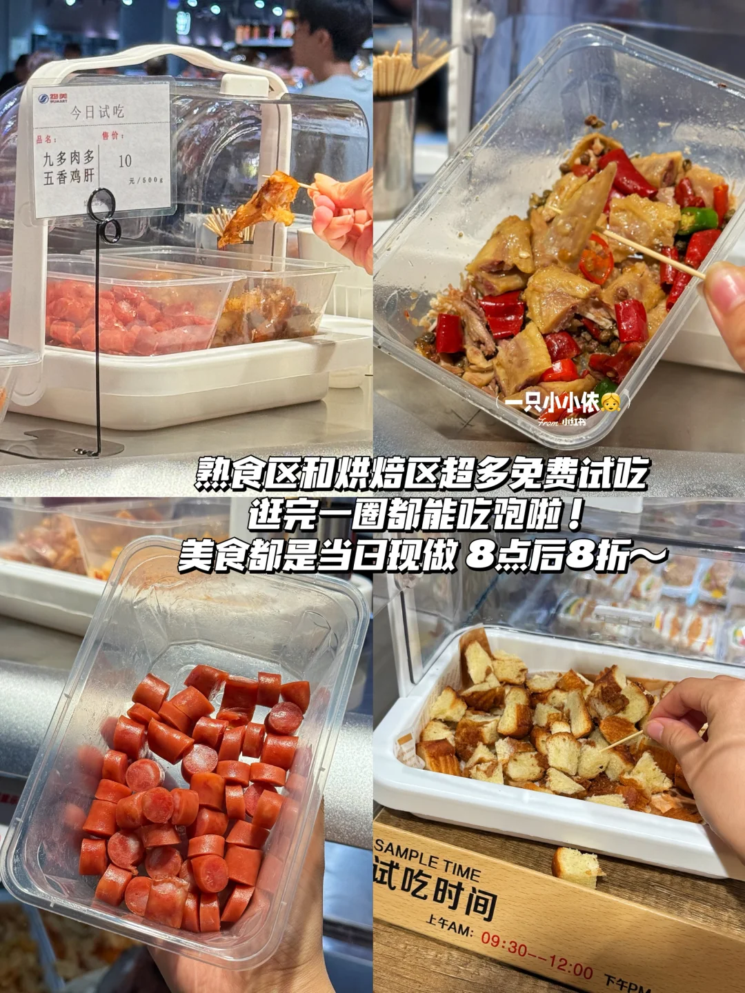 物美的美食都是当天现做,8点之后打8️⃣折,安全新鲜,还可以免费试吃,直接吃到撑😋食品安全检测室每日抽检商品500+✨可以清楚看见食品安检过程,主打一个放心炫!🍽️