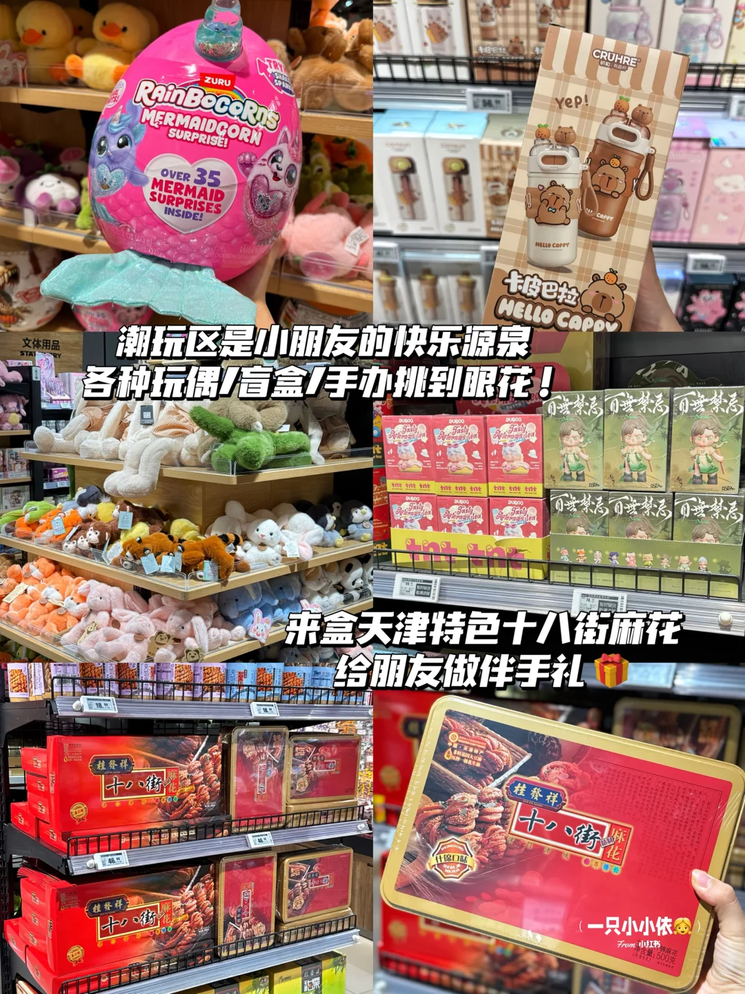 逛景区当然得带点伴手礼啦🎁我女鹅在潮玩百货开启了沉浸式选礼物模式,各种玩偶、盲盒、手办挑到眼花!🥳有外地朋友过来玩,还给他带了天津特色美食十八街麻花,方便省心!