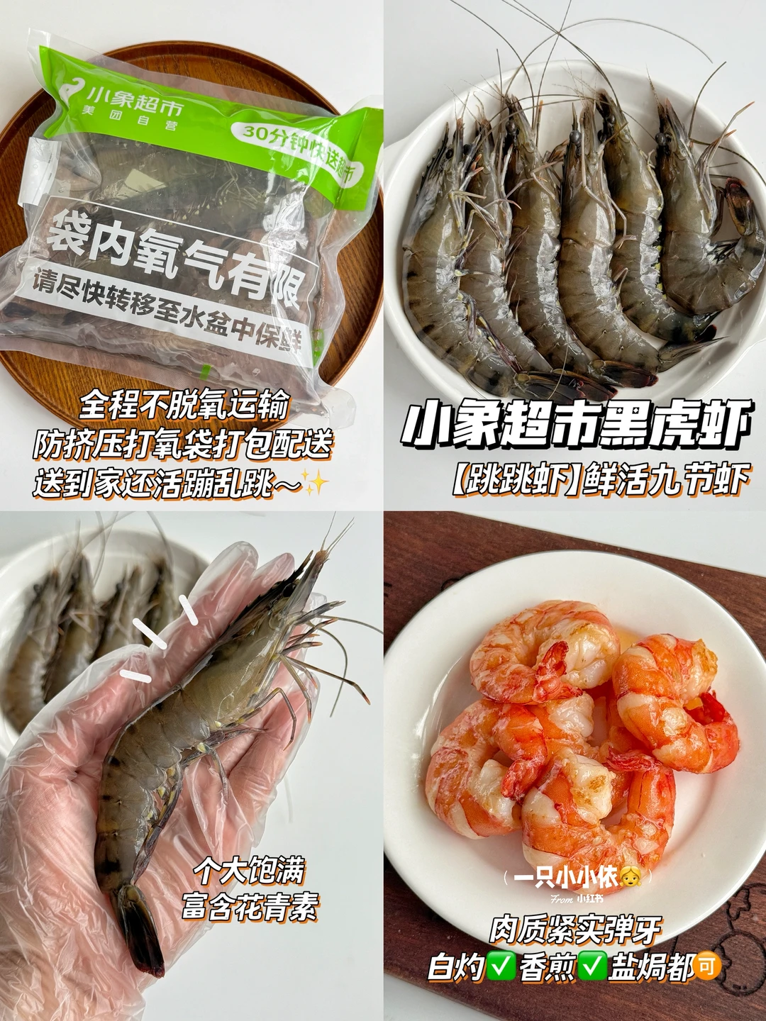 除了🦀,跳跳虾也是鲜到跺jio jio!有大海白虾、黑虎虾、罗氏虾三种,个大饱满又紧实Q弹,不愧是5道品控严格养出来的“报恩虾”!我买的黑虎虾🦐35.9有10到15只,无论是白灼、香煎、小炒都不错👏👏配送过程中有防挤压打氧袋护送,送到家里都是活蹦乱跳的,鲜的跟刚从大海里打捞出来一样🌊