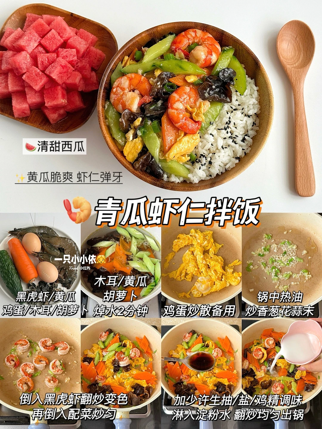 🍤青瓜虾仁拌饭+清甜西瓜