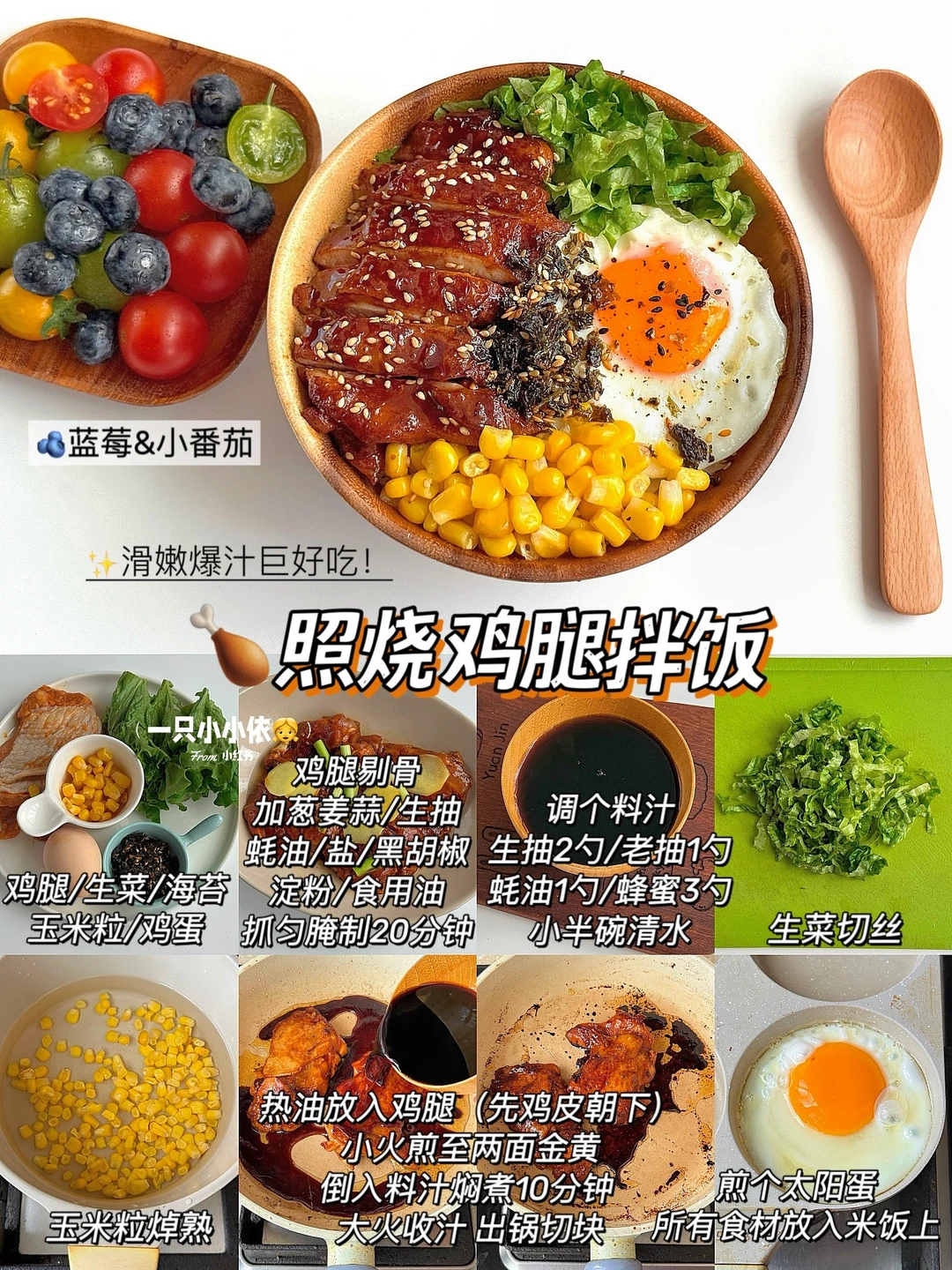 🍗照烧鸡腿拌饭+蓝莓小番茄