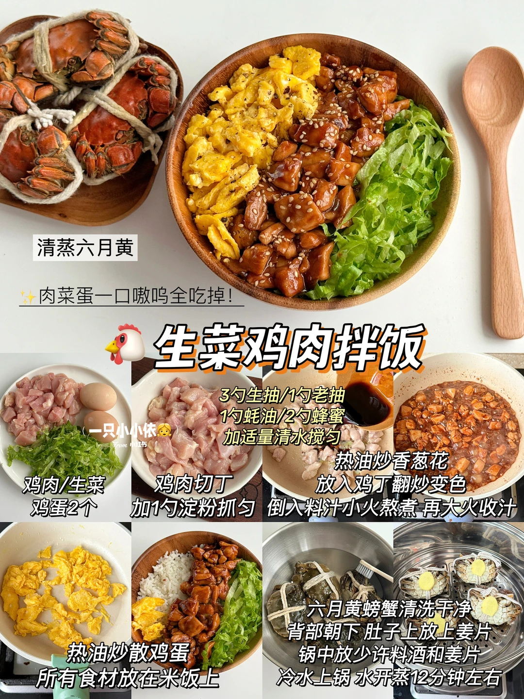 🐔生菜鸡肉拌饭+ 清蒸六月黄