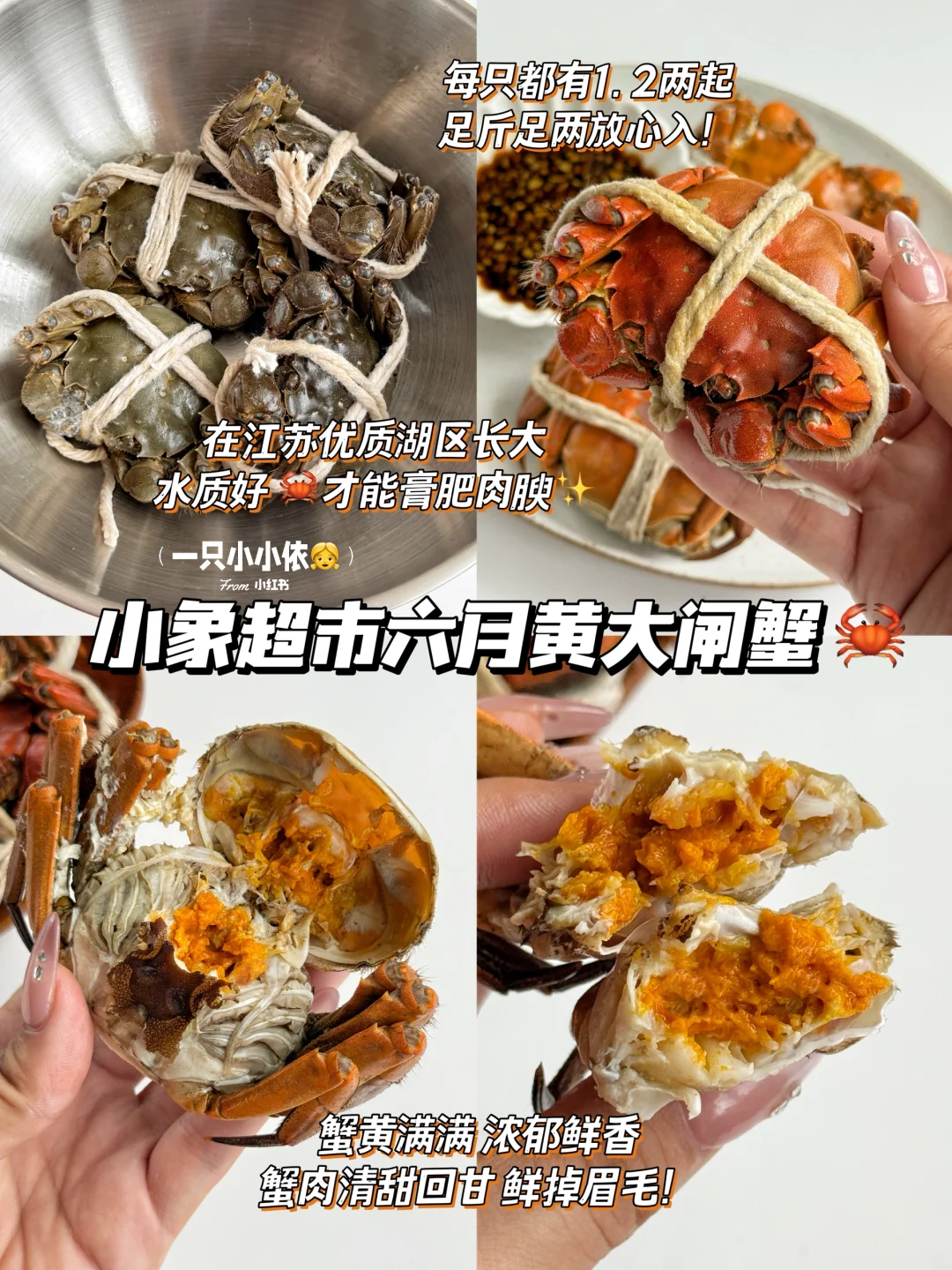 先来夸夸这个来自江苏优质湖区的大闸蟹,简直是初夏尝鲜的不二之选!4️⃣只才29.9💰分分钟实现螃蟹自由!每只都有1.2两起,足斤足两,蟹黄浓郁鲜香,蟹肉清甜回甘,蒸熟后蘸点姜醋汁,简直鲜掉眉毛了![大笑R]