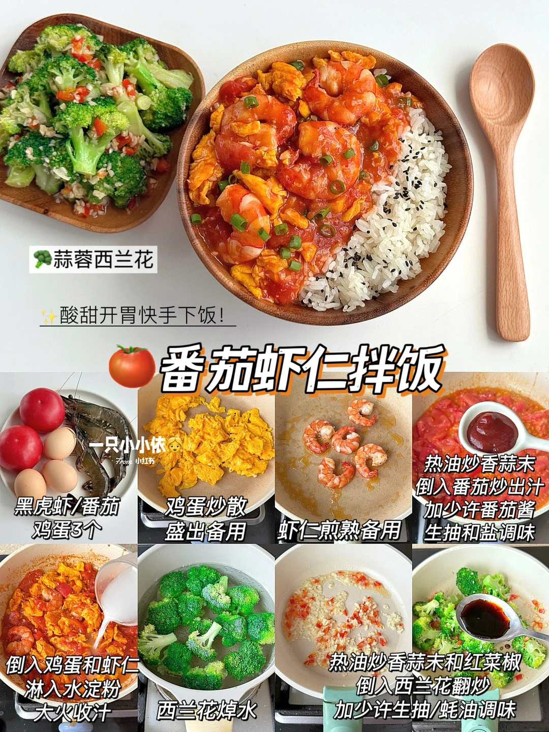 🍅番茄虾仁拌饭+ 蒜蓉西兰花
