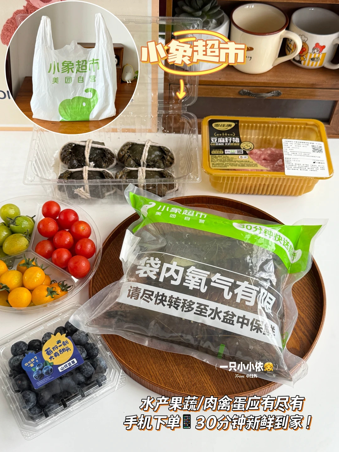 ☀️夏日的漂亮饭是小象超市给的,不用出门人挤人,手机下单30分钟,就能吃到五湖四海的新鲜美味!最近馋海鲜了,立刻点了六月黄大闸蟹🦀和跳跳虾🦐好吃不长肉,我跟女鹅都好爱!❤️