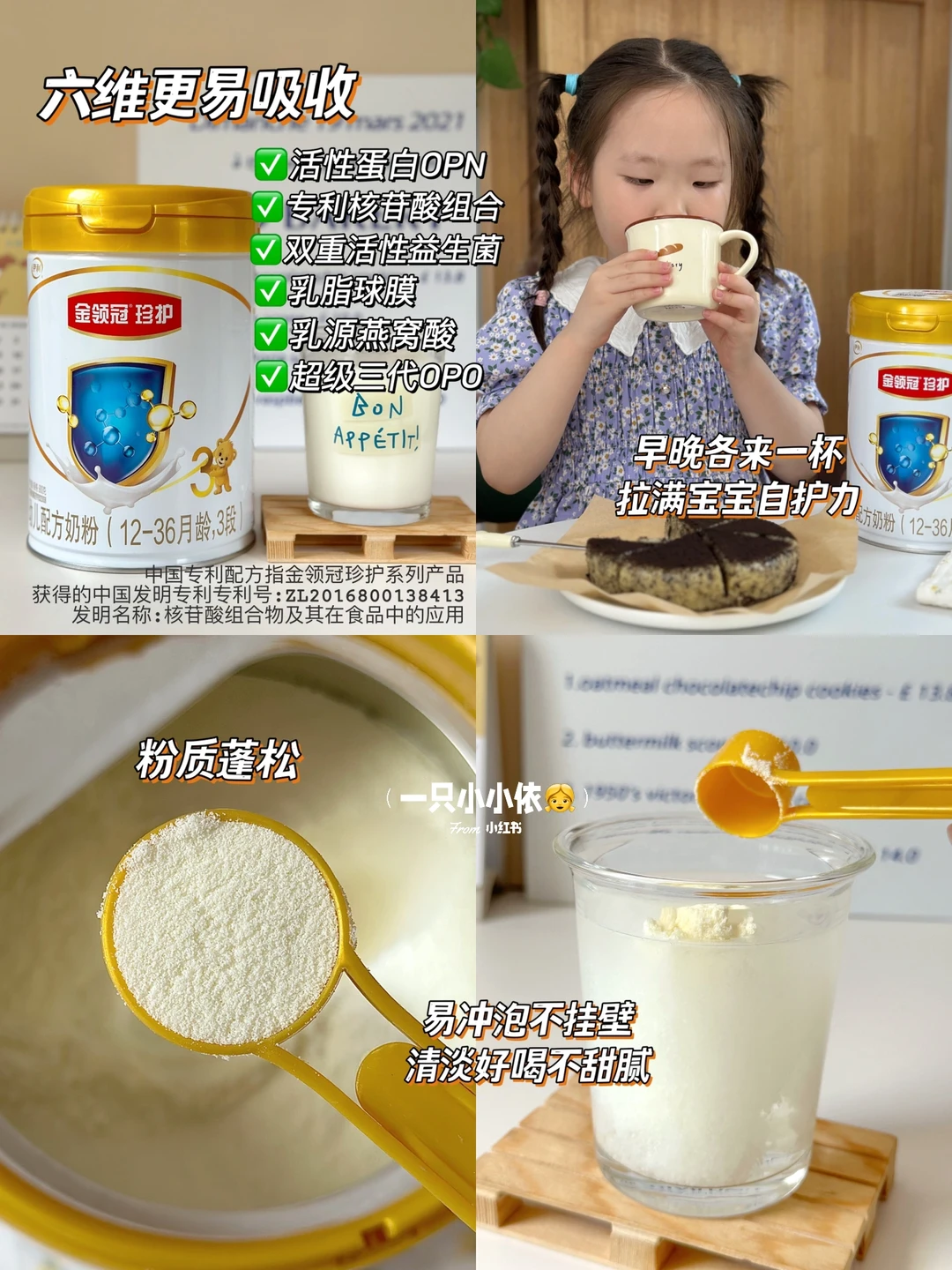 在奶源方面,金领冠珍护臻选0.1%专属牧场,新鲜生牛乳一次成粉,2小时冷链直达工厂,轻松解锁丰富营养和新鲜口感✨粉质蓬松,非常好冲泡,泡好的奶是那种淡淡的奶香味,无论是直接喝还是做辅食孩子都很喜欢🫰
