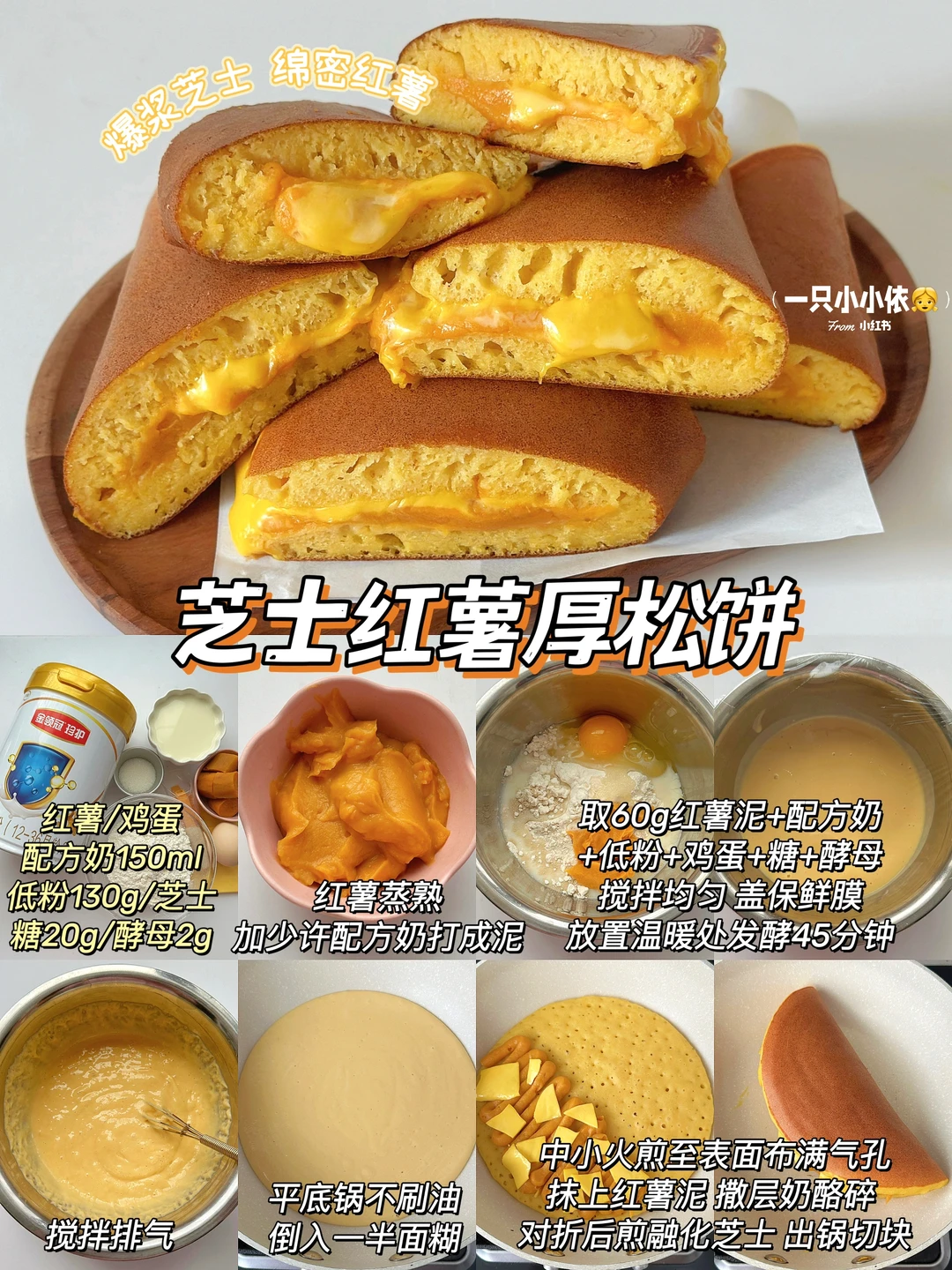 👏🏻香甜松软,奶香浓郁,吃起来像蛋糕一样蓬松🍰搭配一杯配方奶敲满足,很适合作为宝宝早餐或下午茶😄无需烤箱、不用打发,一口平底锅就搞定!2分钟解锁6⃣️种口味,每一种都亲测好吃哦😎大朋友小朋友都爱吃!