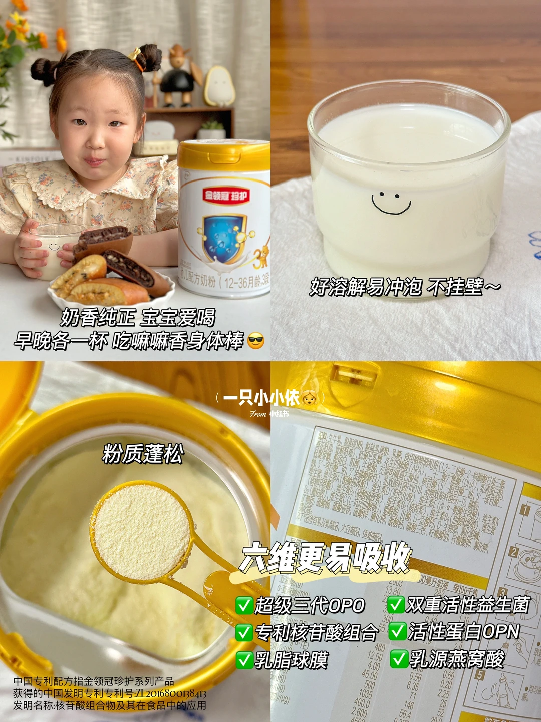 众所周知OPO可以促进关键脂肪酸、钙等营养物质的吸收,减少营养流失👏🏻那金领冠珍护的【超级三代OPO】就更腻害了!它的添加量达到了6.4g/100g,相较普通OPO而言,对肚肚的亲和性更强[赞R]像我女鹅平时很少出现上火、便秘等不适症状,除了平时注意均衡饮食、多喝水,很重要的原因就是归功于OPO啦💁♀️再搭配【双重活性益生菌】,呵护宝宝肠道健康,便便不费力,可以说1+1>2啦😛