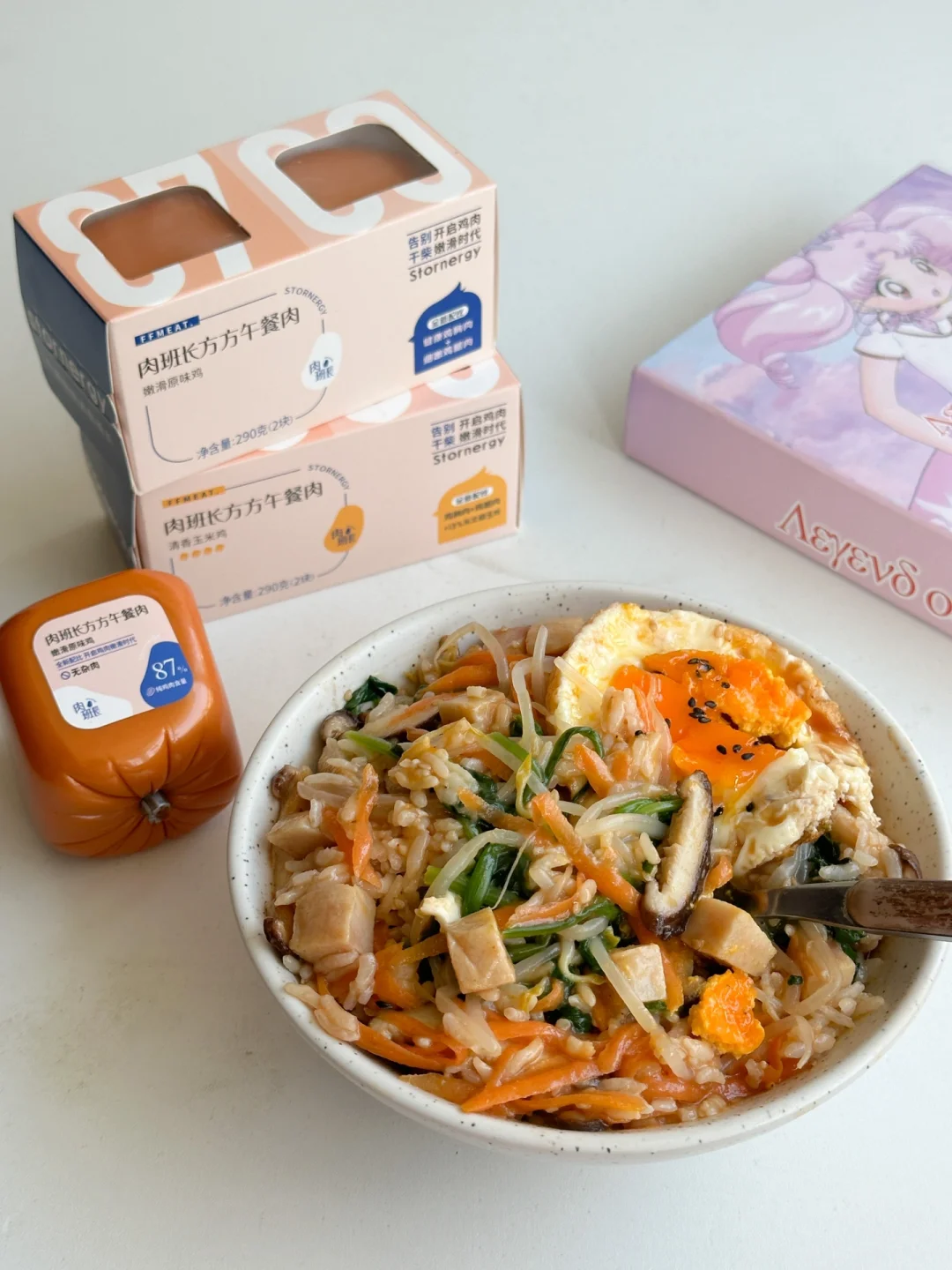 拌饭中我用的是肉班长方方午餐肉~嫩滑原味鸡的也太嫩了吧!87%纯鸡肉,没有淀粉,Q弹滑嫩!配料干净,给女鹅吃也放心~平时时间紧张煎几片,轻松搞定营养一餐!