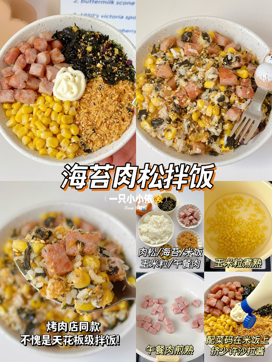 🔹做法:玉米粒煮熟,午餐肉煎熟;配菜码在米饭上,挤少许沙拉酱✅
