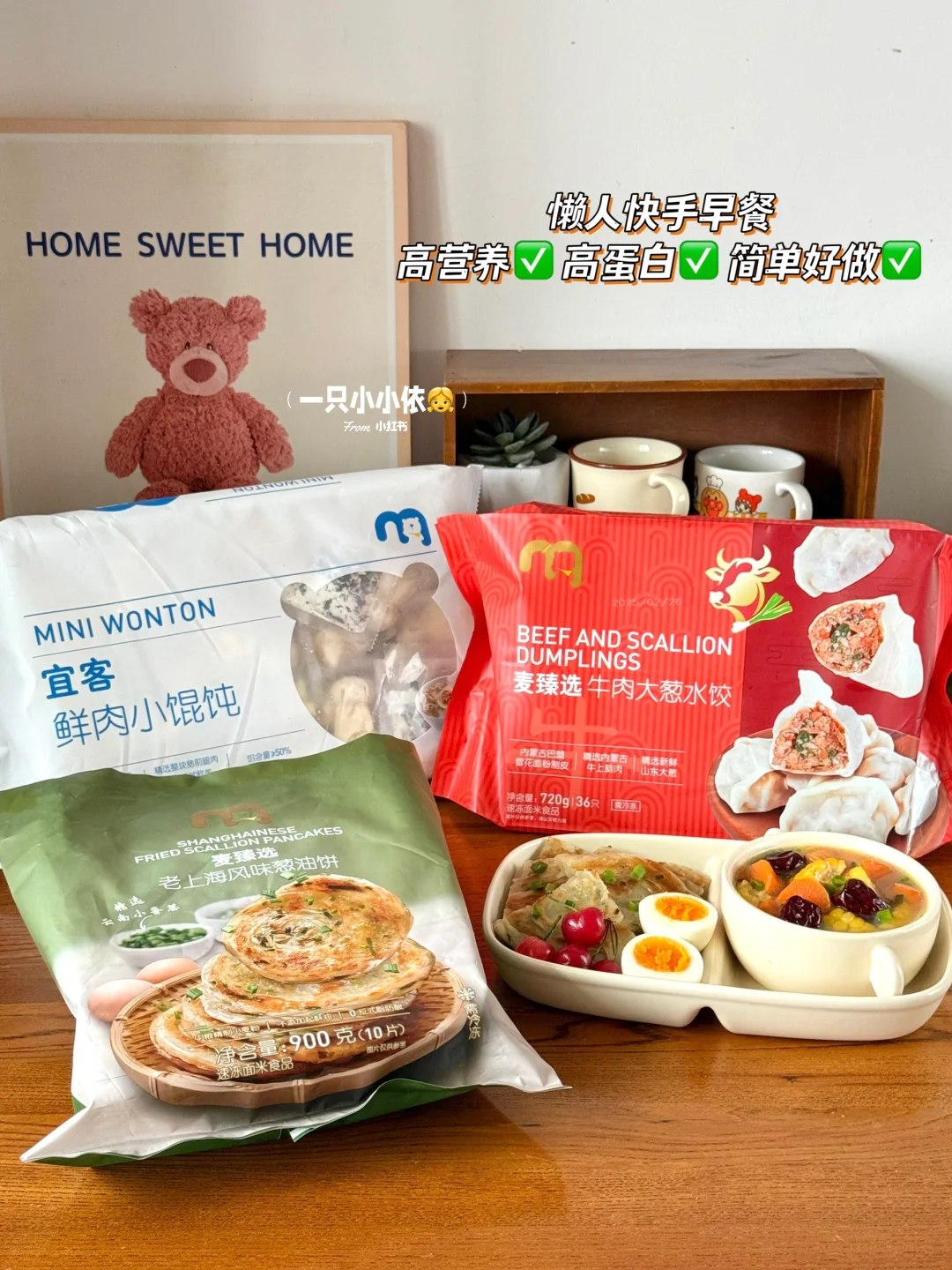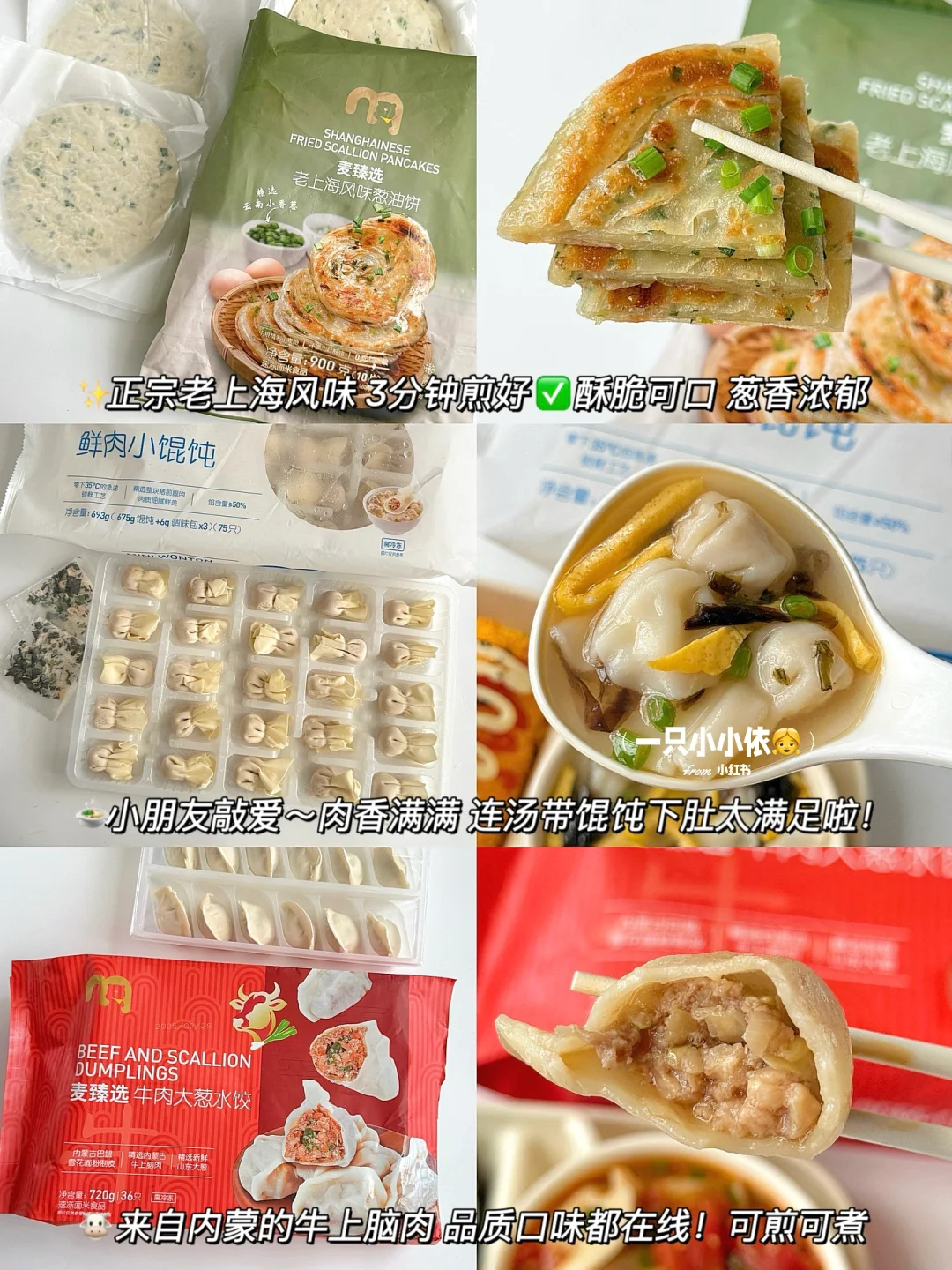 🧚♀️很多妈妈说做早餐总是手忙脚乱,其实除了提前一晚处理好食材,也可以选择一下高营养的速成品哦🥳周末去麦德龙囤了很多懒人早餐,每天多睡20分钟不是梦[哇R]女鹅敲爱麦臻选牛肉大葱水饺,皮薄馅大、肉香扑鼻,煎着吃煮着吃都很棒👍葱油饼是老上海风味的,几分钟就煎好,金黄酥脆、葱香四溢✨宜客鲜肉小混沌鲜香细腻,自带调味包,满满一大盒够全家人分享😋这几个宝藏早餐已经get到全家人的一致好评!而且配料表都很干净,给小朋友食用没有负担🥰姐妹们也可以放心囤哦~