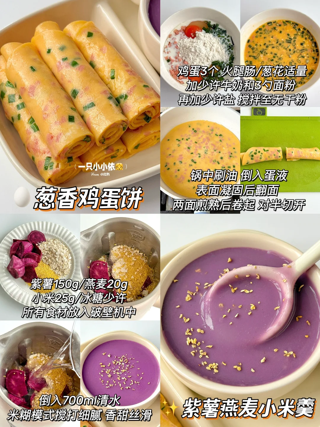 Day 5️⃣:葱香鸡蛋饼+紫薯燕麦小米羹
