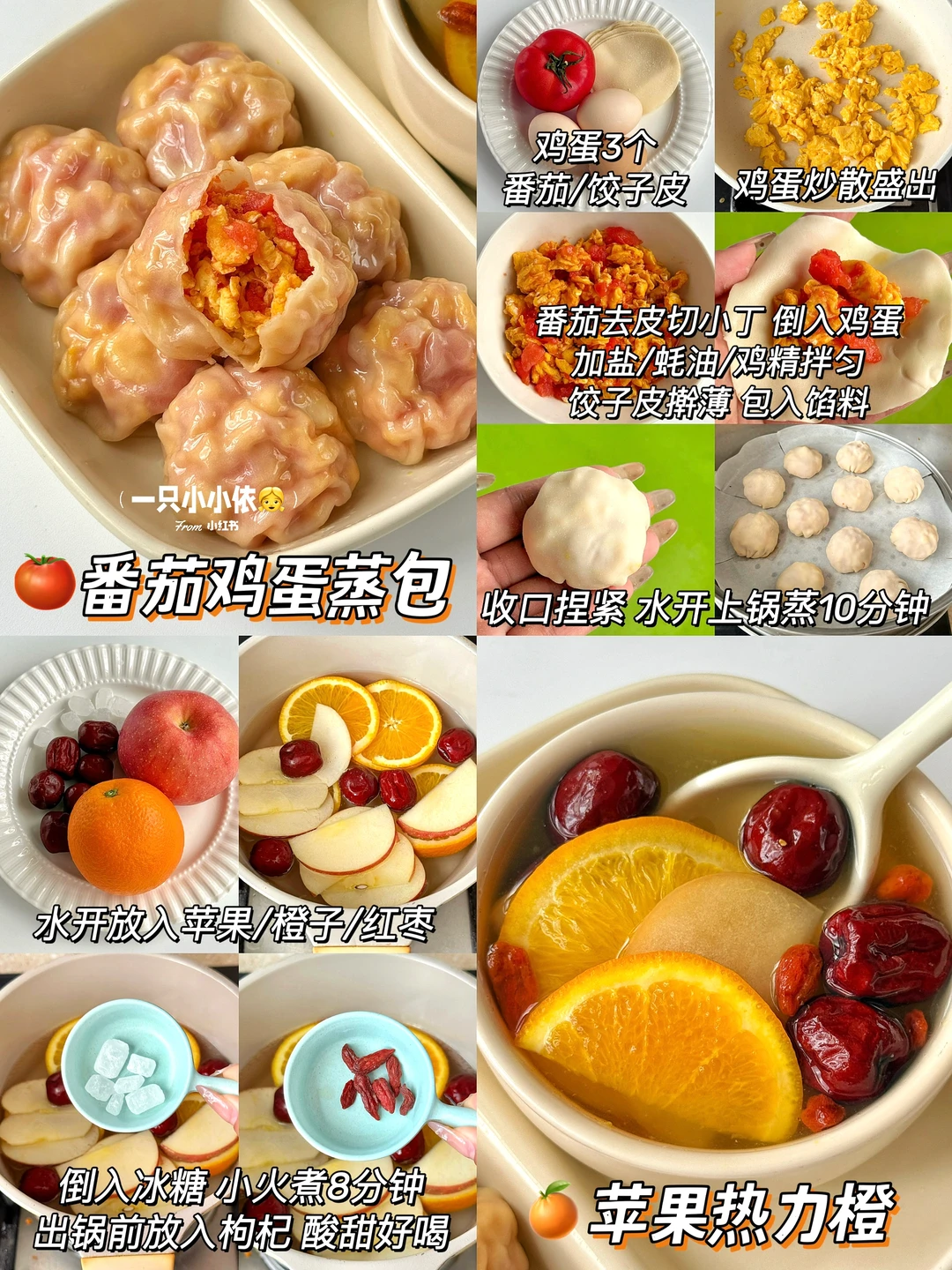 Day 2️⃣:番茄鸡蛋蒸包+苹果热力橙