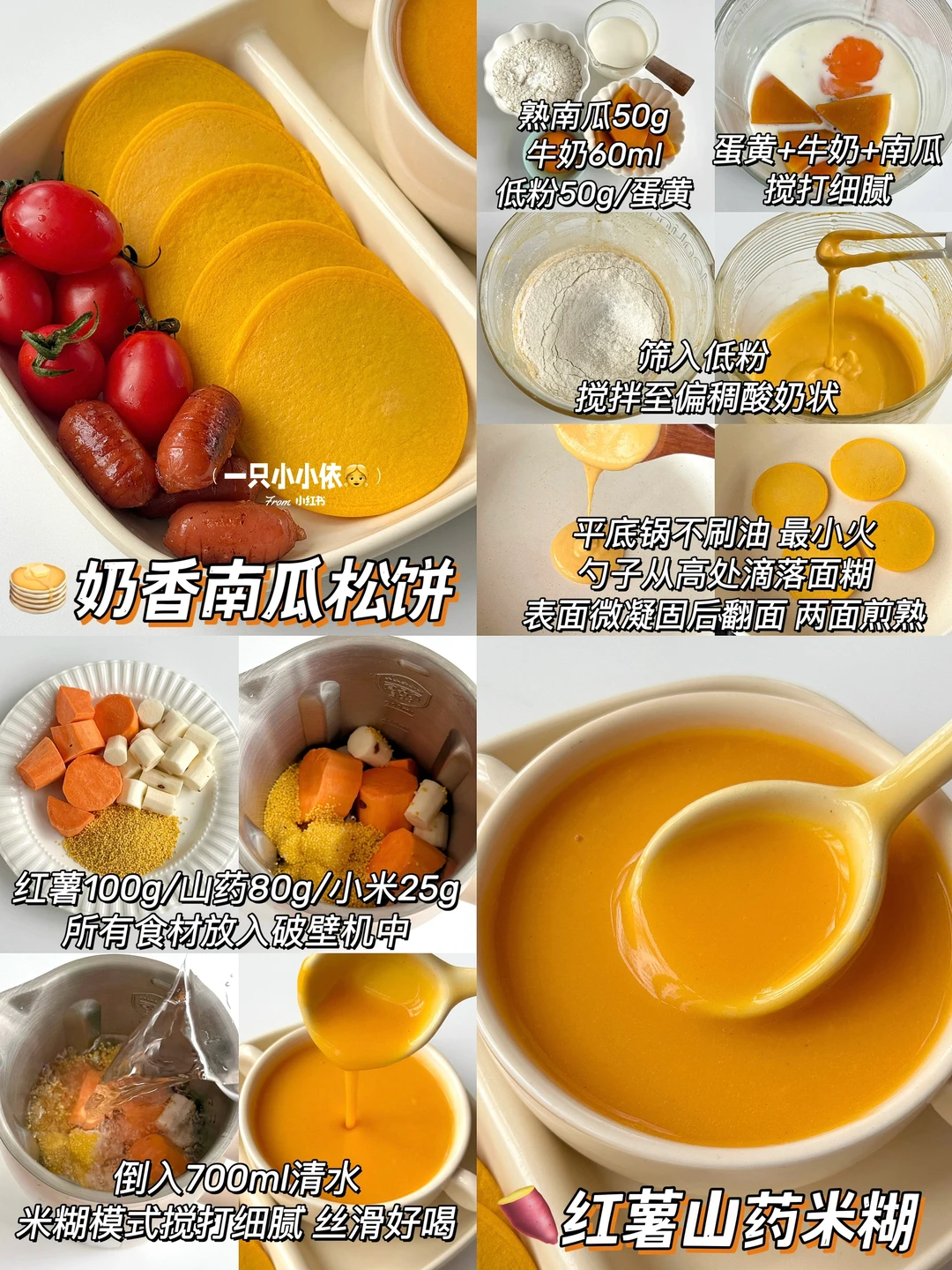 Day 1️⃣:奶香南瓜松饼+红薯山药米糊