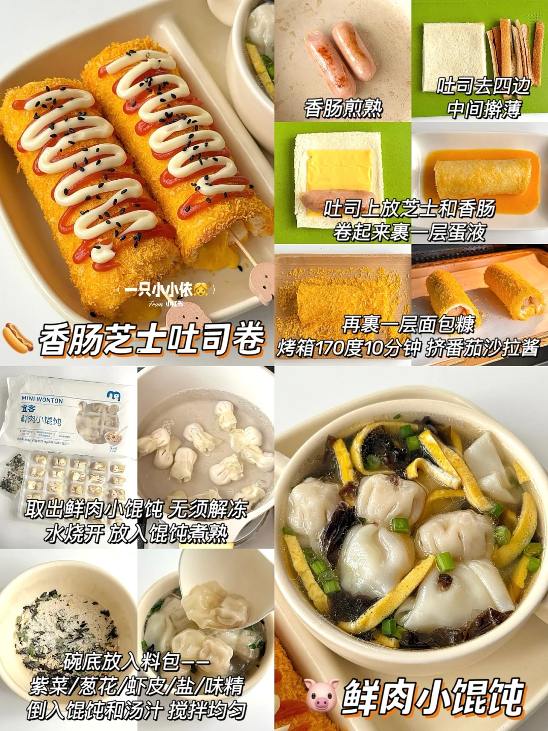 Day 4️⃣:香肠芝士吐司卷+鲜肉小馄饨