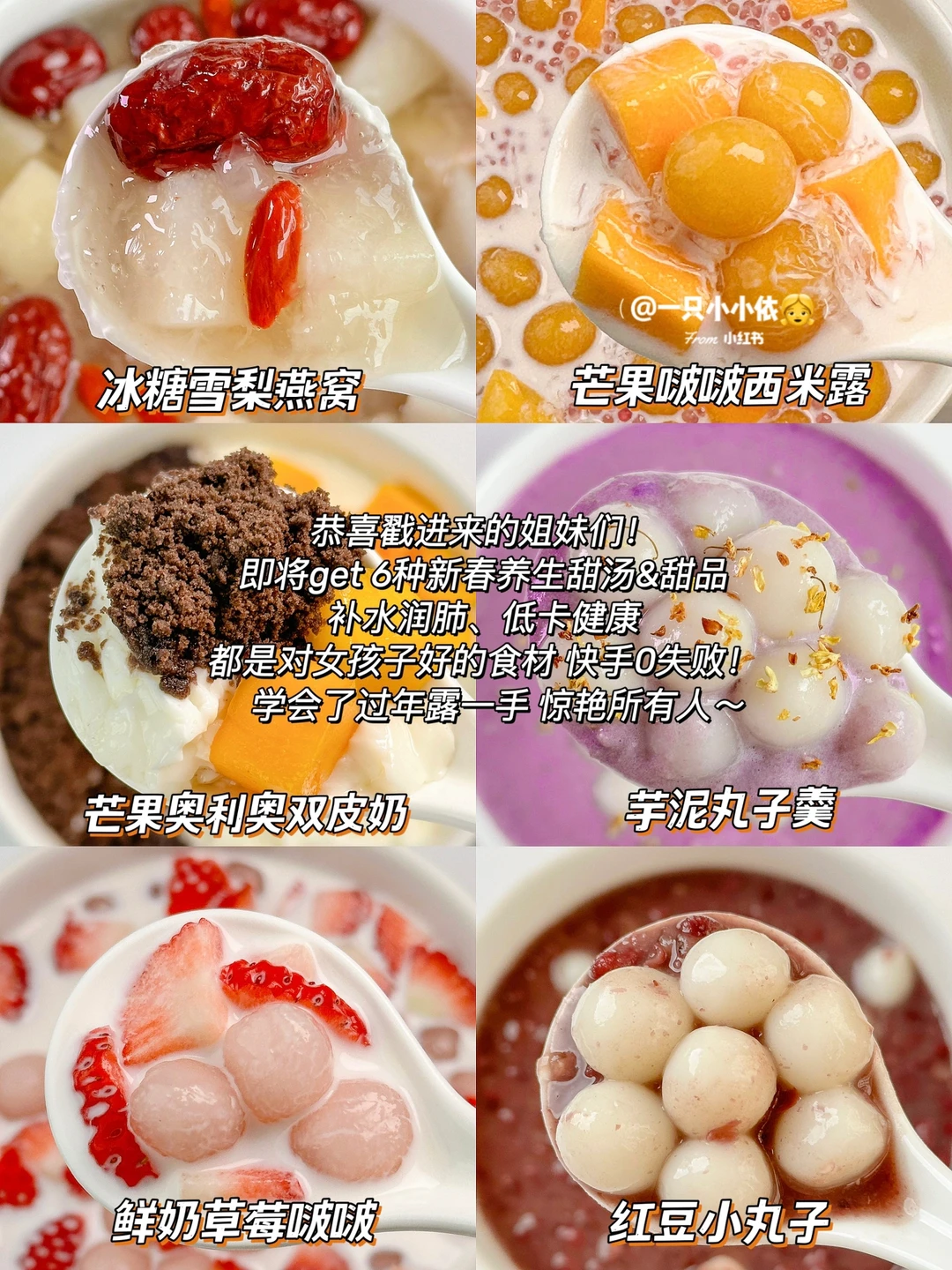 ✨这期整理了6种自制新年养生甜汤&甜品合集,用的都是雪梨、燕窝、银耳等对女孩子好的食材,补水润燥、健康低卡,喝出好气色,敷面膜都省了😄很适合现在这个时期喝噢[哇R]做起来也很简单哦!