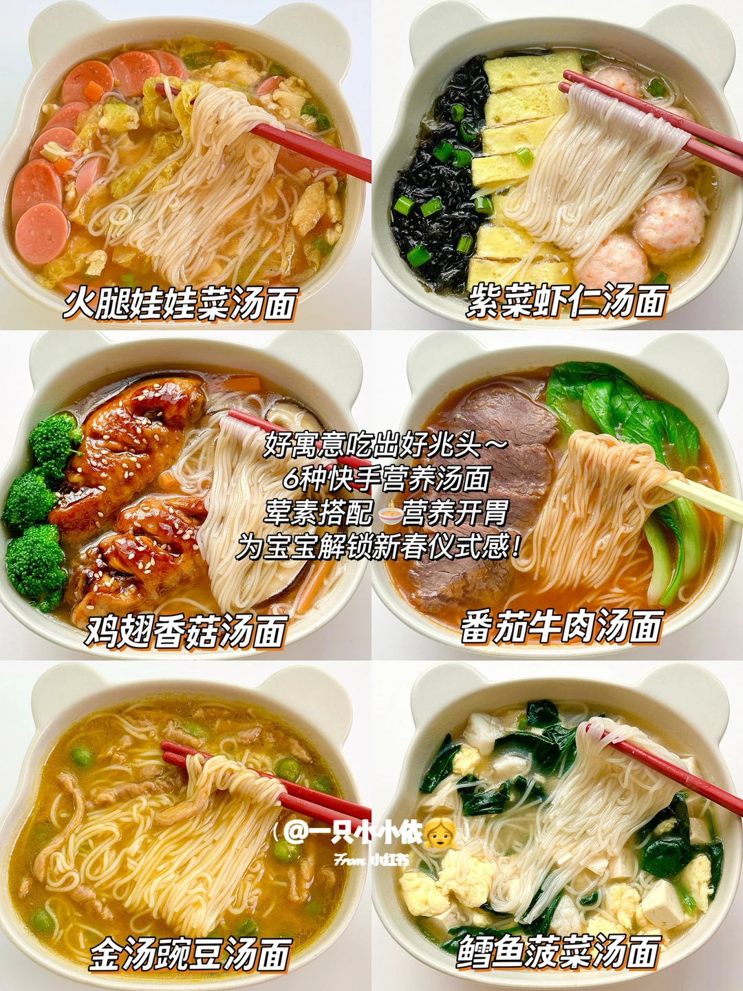 💁♀️给大家整理了6种营养开胃、荤素搭配的营养汤面,快手简单,每一种都有吉祥寓意,一碗连汤带面下肚,敲满足der👏🏻快加入宝宝的年夜饭菜单!学会了当成家常便饭也很美味~