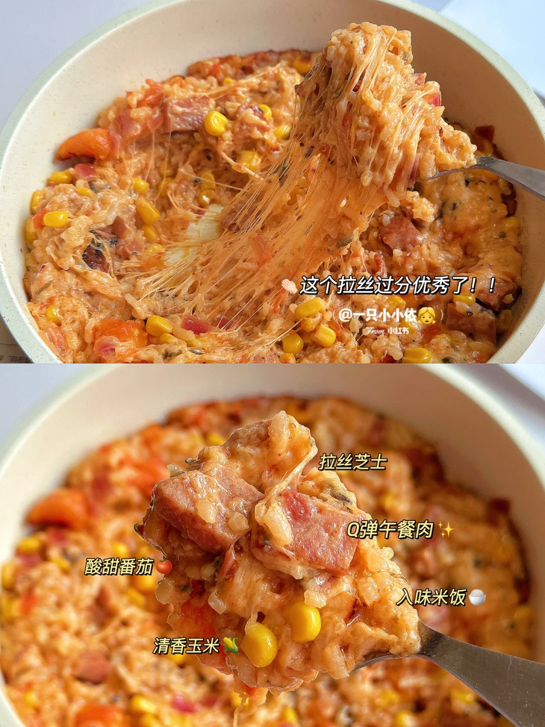 🍚剩米饭+浓郁芝士+酸甜番茄+Q弹午餐肉=王炸cp!简单一锅端,15分钟搞定,每一口都过瘾!大朋友小朋友抢着吃~