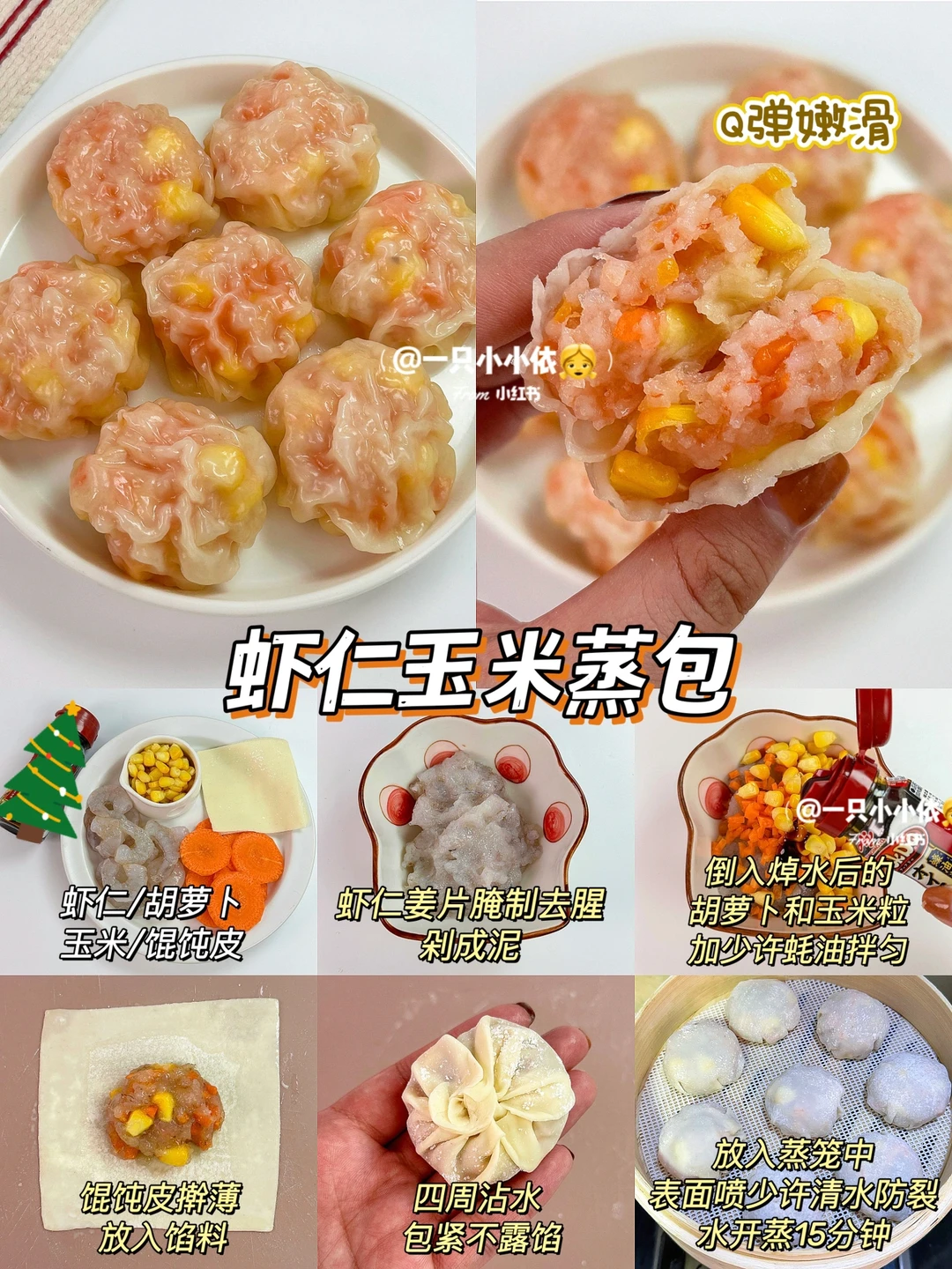 👉食材:虾仁/胡萝卜/玉米/馄饨皮