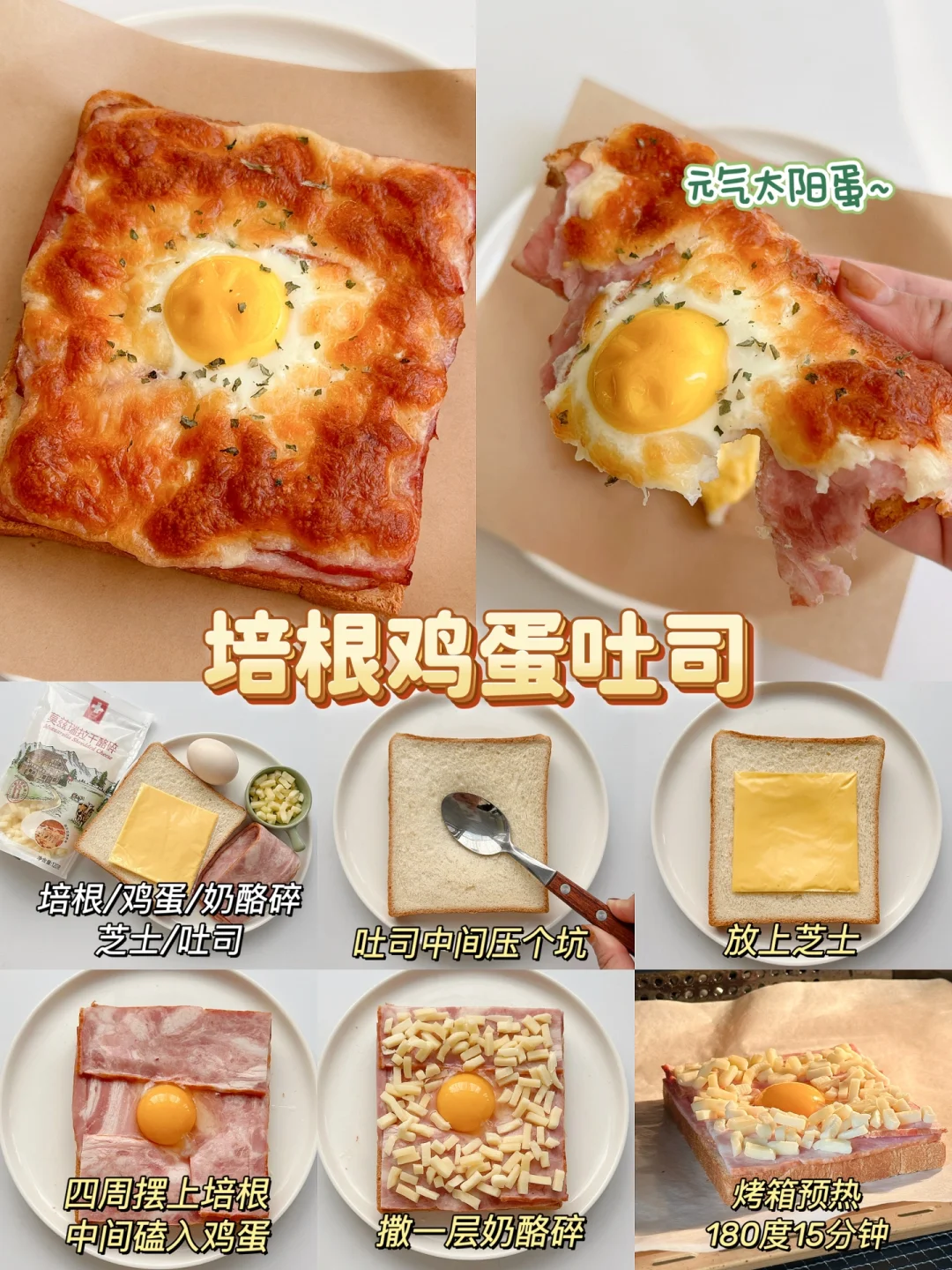✨食材:培根/鸡蛋/奶酪碎/芝士/吐司