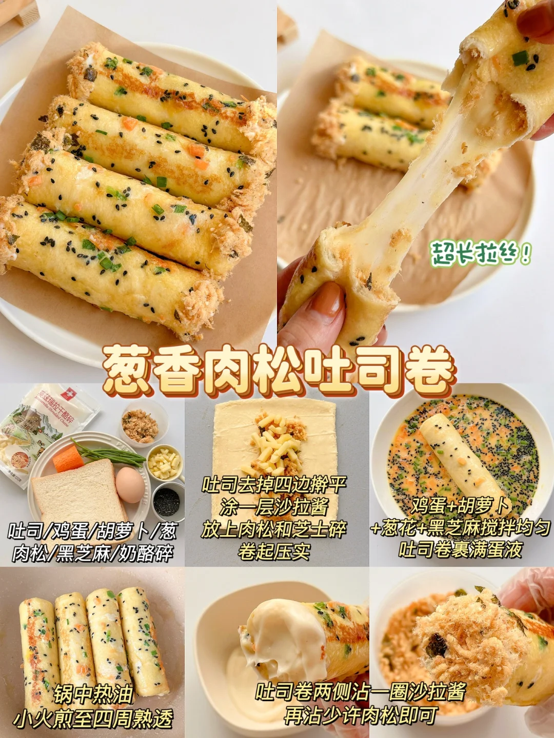 ✨食材:鸡蛋/胡萝卜/葱花/肉松/吐司/黑芝麻/奶酪碎
