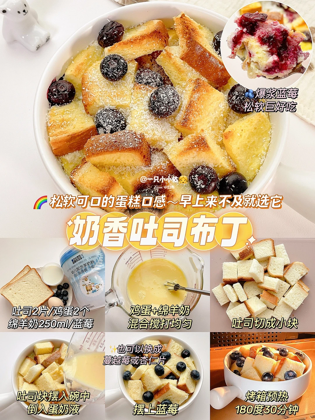 👉每当起不来做早餐,都会拿女鹅在喝的蓝河绵羊奶粉来做蛋烤奶吃😆南瓜、红薯、吐司、燕麦等口味换着来,松软可口、外酥里嫩、奶香浓郁,一周吃不腻!再搭配一杯热乎乎的蓝河绵羊奶,超满足der!😋