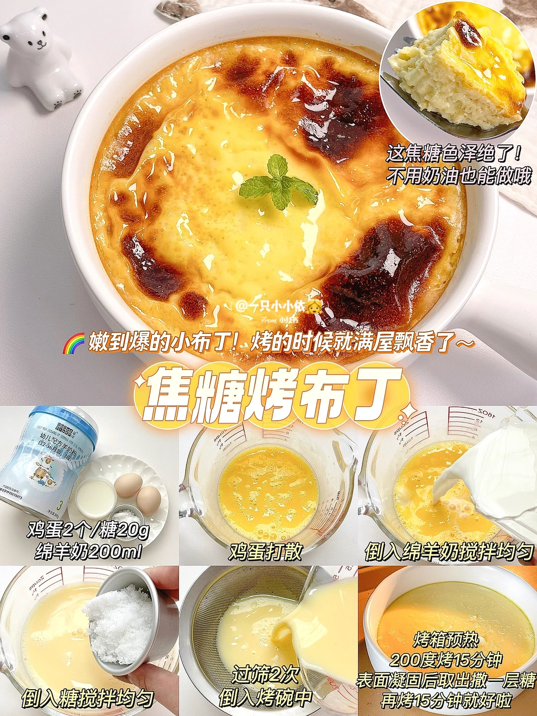 👉食材:鸡蛋2个/糖20g/泡好的绵羊奶200ml