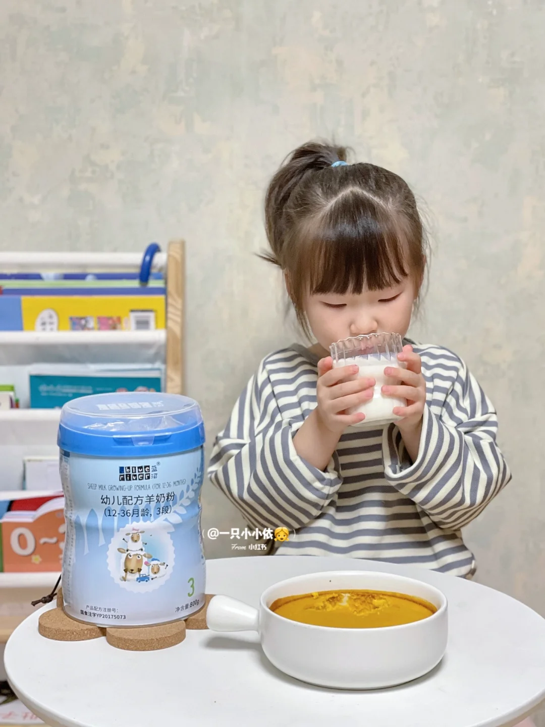 👧我女鹅喝的是蓝河绵羊奶粉,因为绵羊奶是天然A2蛋白,更加亲和肠胃更低敏,而且分子比牛奶小1/3,营养吸收一整个拿捏住,用作每日宝宝的营养补充再合适不过啦~