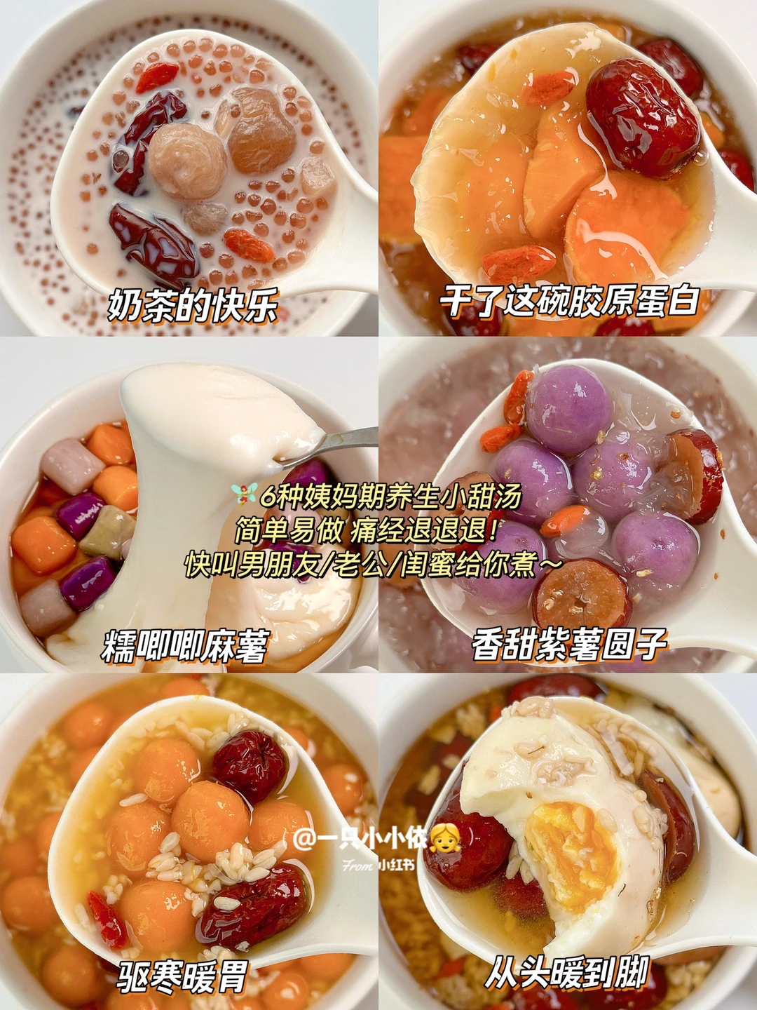 👉6种冬日滋补养生小甜汤,简直是大姨妈期的续命快乐水😎用的都是银耳、红枣、枸杞、黑糖等养生食材,还有自制糯唧唧小圆子,驱寒补🩸,一碗下肚从头暖到脚🔥不是生理期也可以多喝哦,分分钟喝出好气色!连腮红和面膜都省啦👏🏻