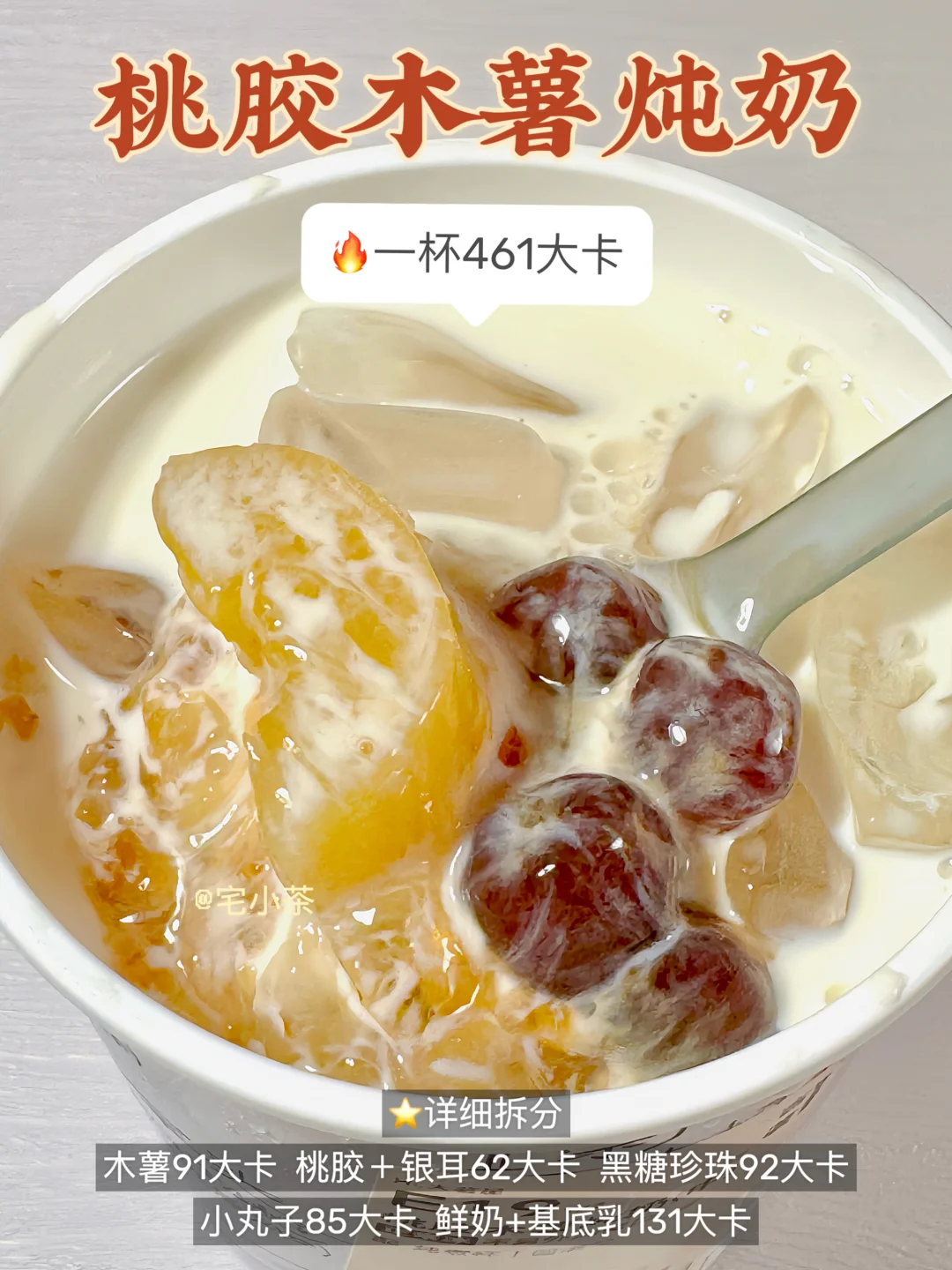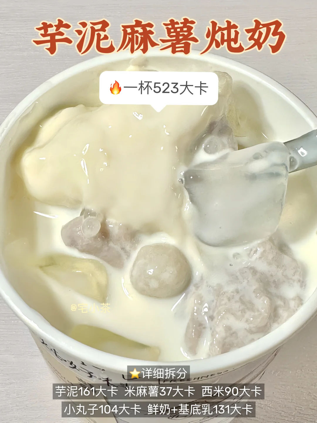 哈喽大家好呀,古茗炖奶最近真的好🔥,上架半小时就无了😅。好不容易蹲到,立马买来测一波! 🌈同样是口味+热量详细拆分,可以直接看图~ PS:不同门店的小料克数不会完全一致,热量仅供参考! 🔸桃胶木薯炖奶 🔸芋泥麻薯炖奶