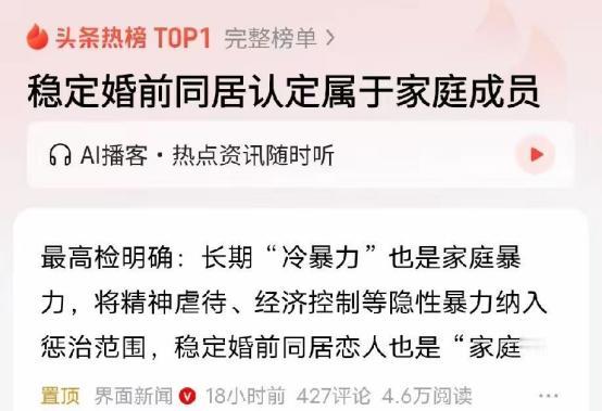 11月26日报道,这一下,还没结婚的人又要慌了,因为新规发布,婚前同居也被认定为家庭成员。 11月25日新规出台,关于“婚前同居被认定为家庭成员”的讨论引爆全网。许多人开始担忧:这是否意味着,即使简单的搭伙过日子,也要承担婚姻般的法律责任? 其实,真正明确规定保护同居关系的,是早在2016年就已实施的《反家庭暴力法》。这个条款的设立初衷,是为了保护那些没有婚姻关系却共同生活的人,特别是女性,在遭遇暴力时能够获得法律庇护。 各地法院已经有不少实践案例。某地曾有位女性在婚前同居期间遭遇男友暴力,法院依据《反家庭暴力法》,做出禁止对方实施暴力并责令其迁出住所的判决。 另一个案例中,同居男友持续跟踪骚扰,女方持同居证明向法院申请保护令获得支持。这些判决传递出明确信号:无论是否领证,暴力行为都不会被法律容忍。 不过,倘若因此认为同居与婚姻画上等号,显然是对法律的误读。同居关系并没有婚姻关系中,财产共有、债务共担、相互继承的权利和义务。 比如同居时买的房子,写谁的名字就归谁所有;若一方突发意外,另一半无法像合法配偶那样直接继承遗产;当感情破裂分手,也无需经历复杂的离婚程序。这些都是“同居”与“结婚”的不同之处。 如今,当代年轻人婚恋观念逐渐转变,越来越多的情侣选择延长恋爱期,通过同居来检验彼此是否适合共度余生。这种看似谨慎的态度背后,是对婚姻更高的期待和更理性的态度。 然而现实中,很多人只是简单地搬到了一起居住,对可能发生的财务纠纷、情感变故缺乏必要准备。法律对同居关系的有限保护,恰似一把双刃剑:既不会让当事人像离婚那样经历繁琐的法律程序,也意味着他们无法享受婚姻制度提供的全面保障。 现代人对亲密关系的态度正在走向成熟,既追求情感联结的深度,也注重保持个体的独立性。这种转变要求法律在保护弱势群体和尊重个人自由之间找到平衡点。 当情感的炽热逐渐降温,生活的琐碎日常成为主旋律,如何平衡浪漫与现实、自由与责任,始终是每对伴侣需要共同面对的课题。法律提供的永远只是底线保障,真正决定关系质量的,永远是相处时的真诚与分离时的体面。 对此你有什么看法?欢迎在评论区留言讨论。新规出台 婚前同居 信息来源: 封面新闻2025-11-26|热搜第一!最高检:婚前同居认定属于家庭成员,引发网友热议 文|墨海 编辑|史叔