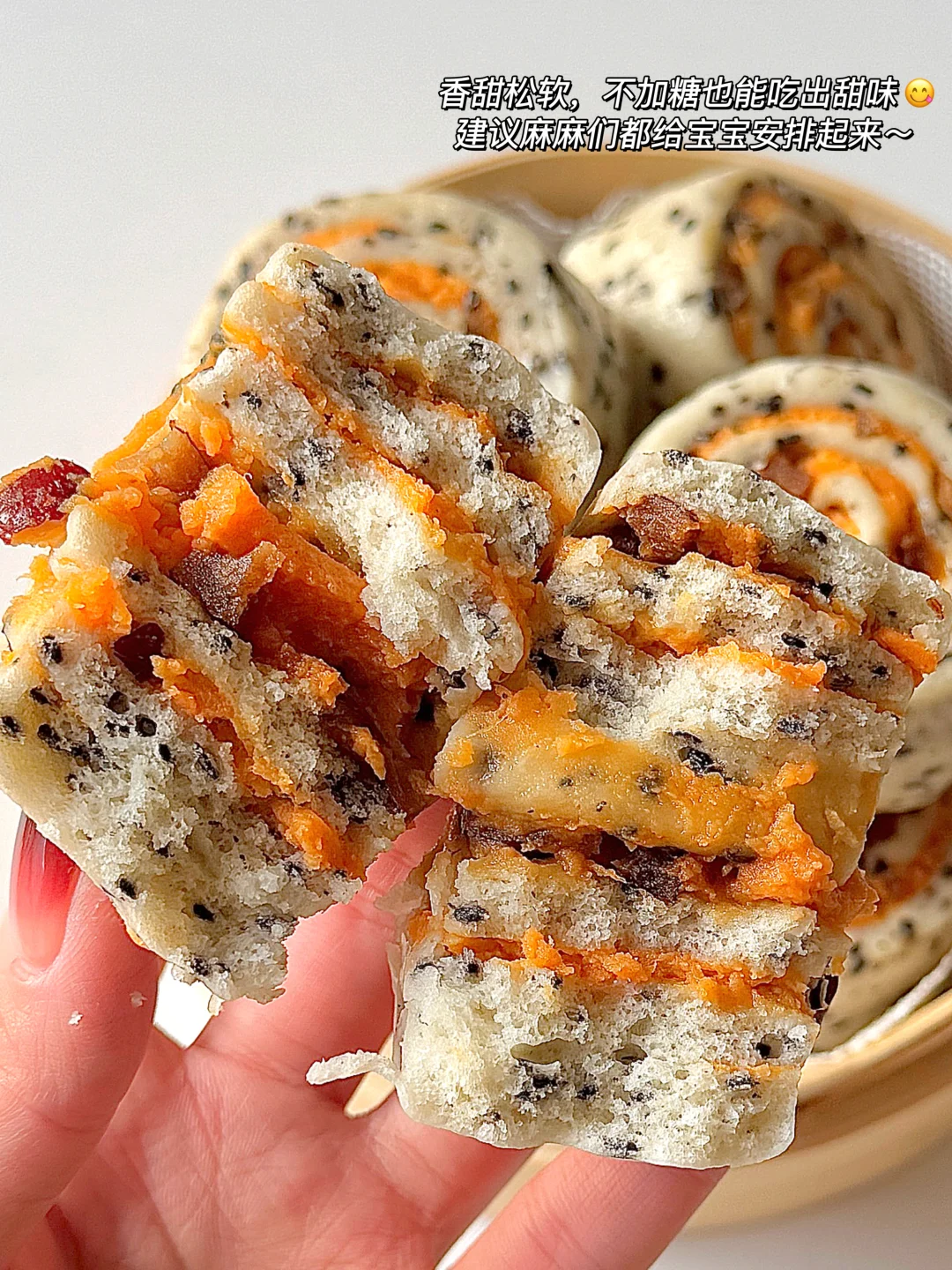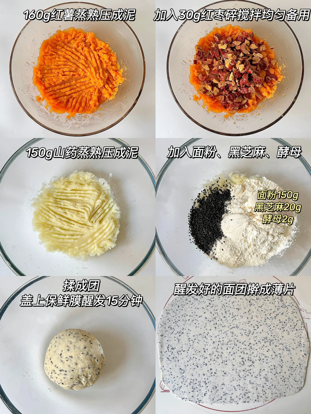 养脾胃山药馒头来啦~建议小朋友多吃哦[赞R][赞R] 红薯香甜、枣香浓郁,蓬松暄软,不加糖吃起来也是甜甜的~ 小朋友脾胃养好了,胃口好,体重自然蹭蹭涨~ 快去安排呀~真的太好吃😋啦~ 🛒食材准备: - 红薯160g - 红枣碎30g - 山药150g - 面粉150g - 黑芝麻20g - 酵母2g 🧑🍳制作过程看上图👆
