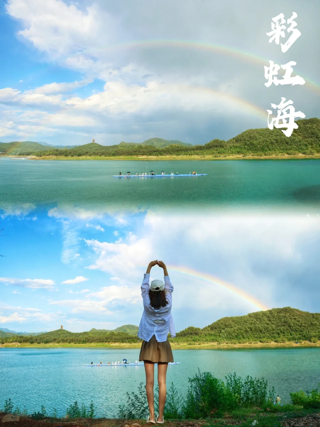 天晴遇到彩虹 波光粼粼的湖面心里都化了