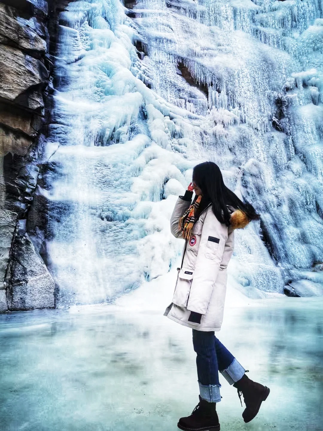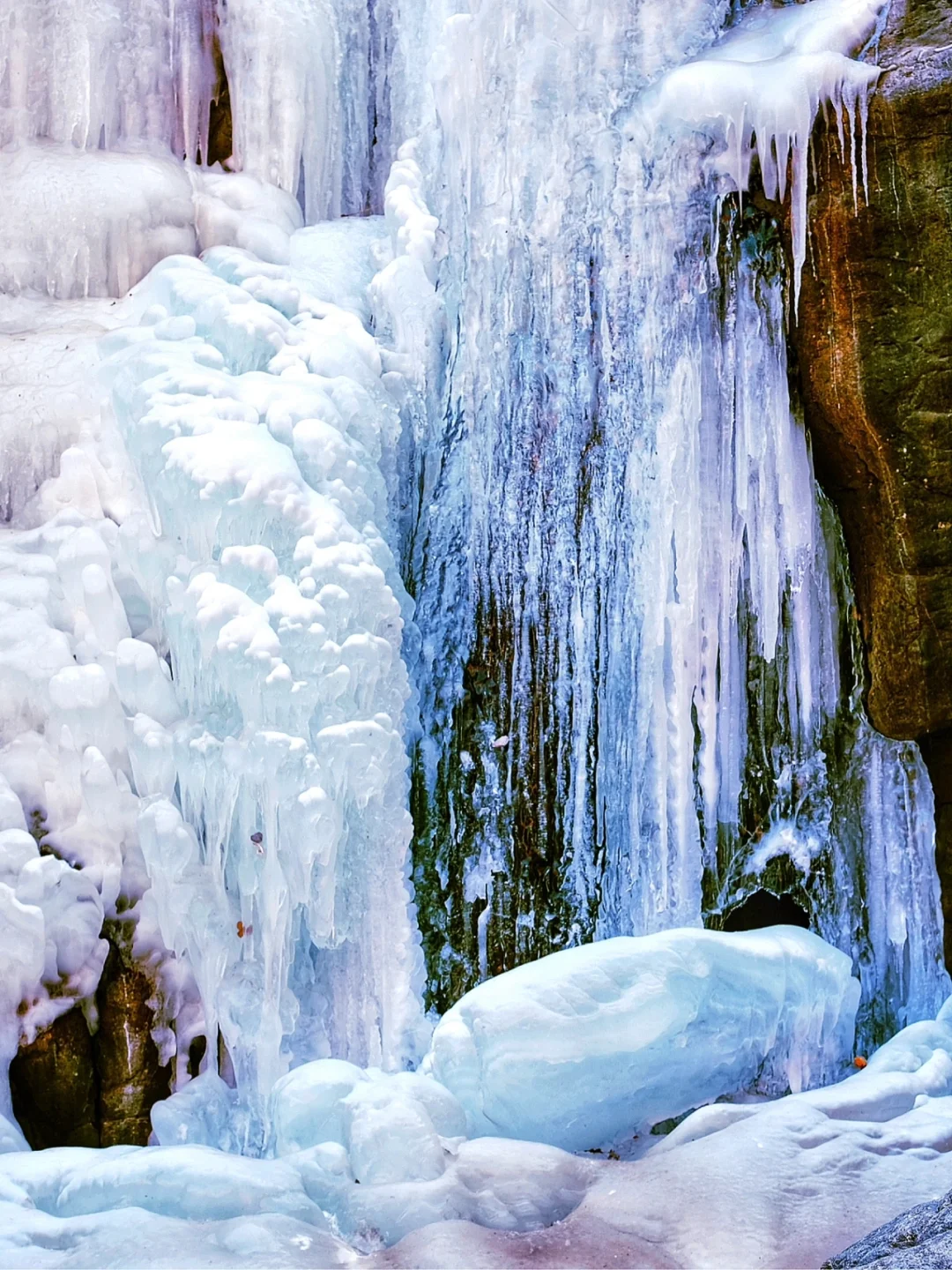 山上徒步路比较好走,一路上有两个冰瀑,但面积较小,上面都是人工冰瀑,这是天然的哦[赞R]