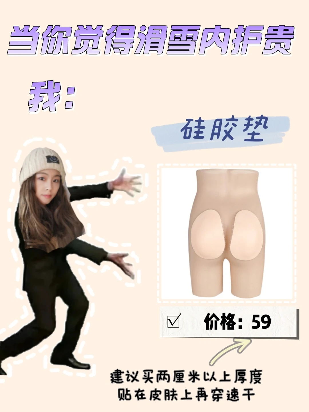 硅胶垫分各种形状 可以买两个大的贴在臀部 再买一个长条形状贴在尾椎骨 一定要买2cm以上厚度才有防摔效果哦