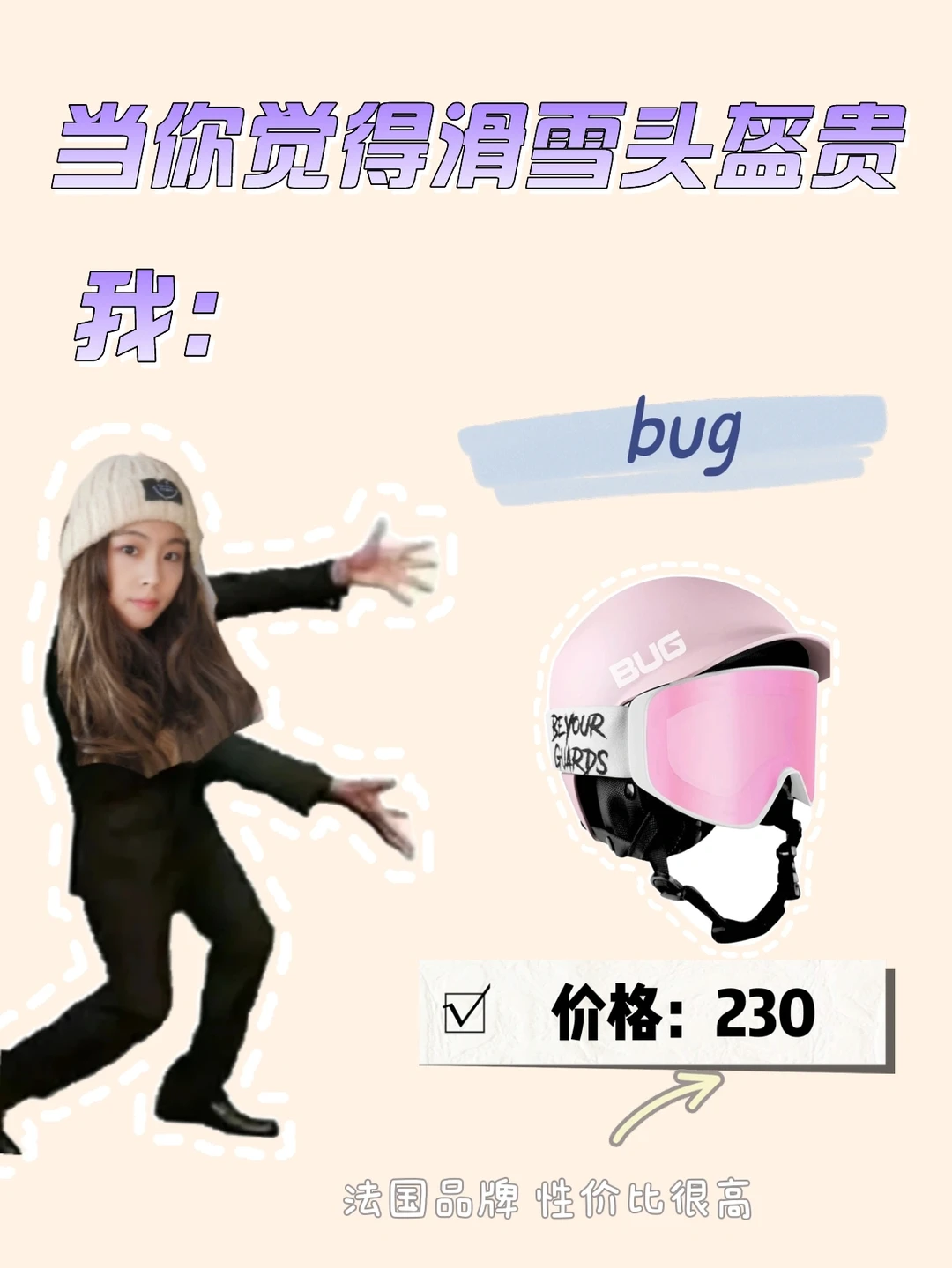 法国品牌,有雪镜和头盔全套款,现在有女神节折扣,做工和质感都不错,现在购买好像送手套,bug家手套应该是雪场热款,总之趁着折扣季买总没错。