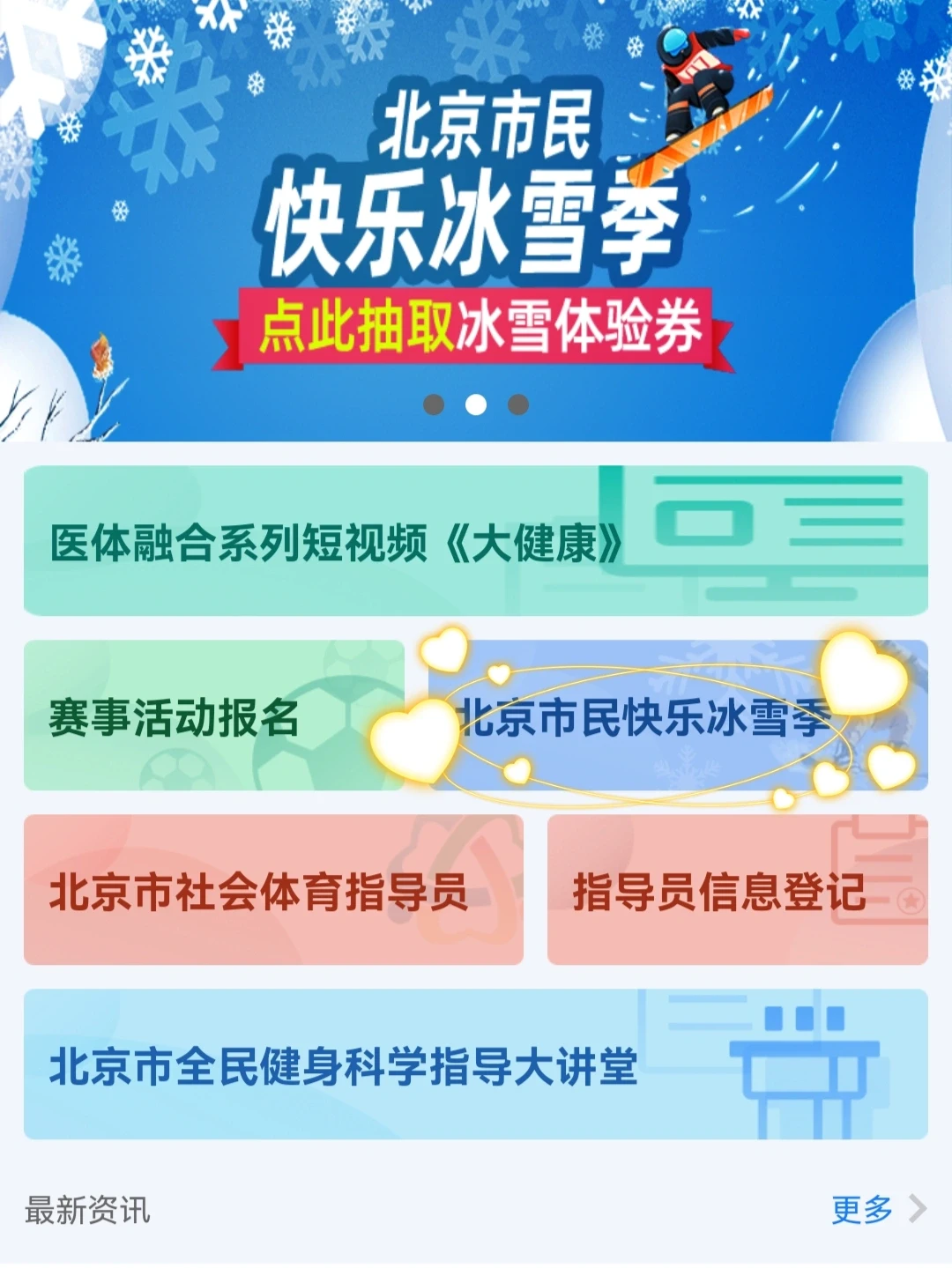 1⃣打开北京健身汇小程序,点击“北京市民快乐冰雪季”,积分兑换雪票~