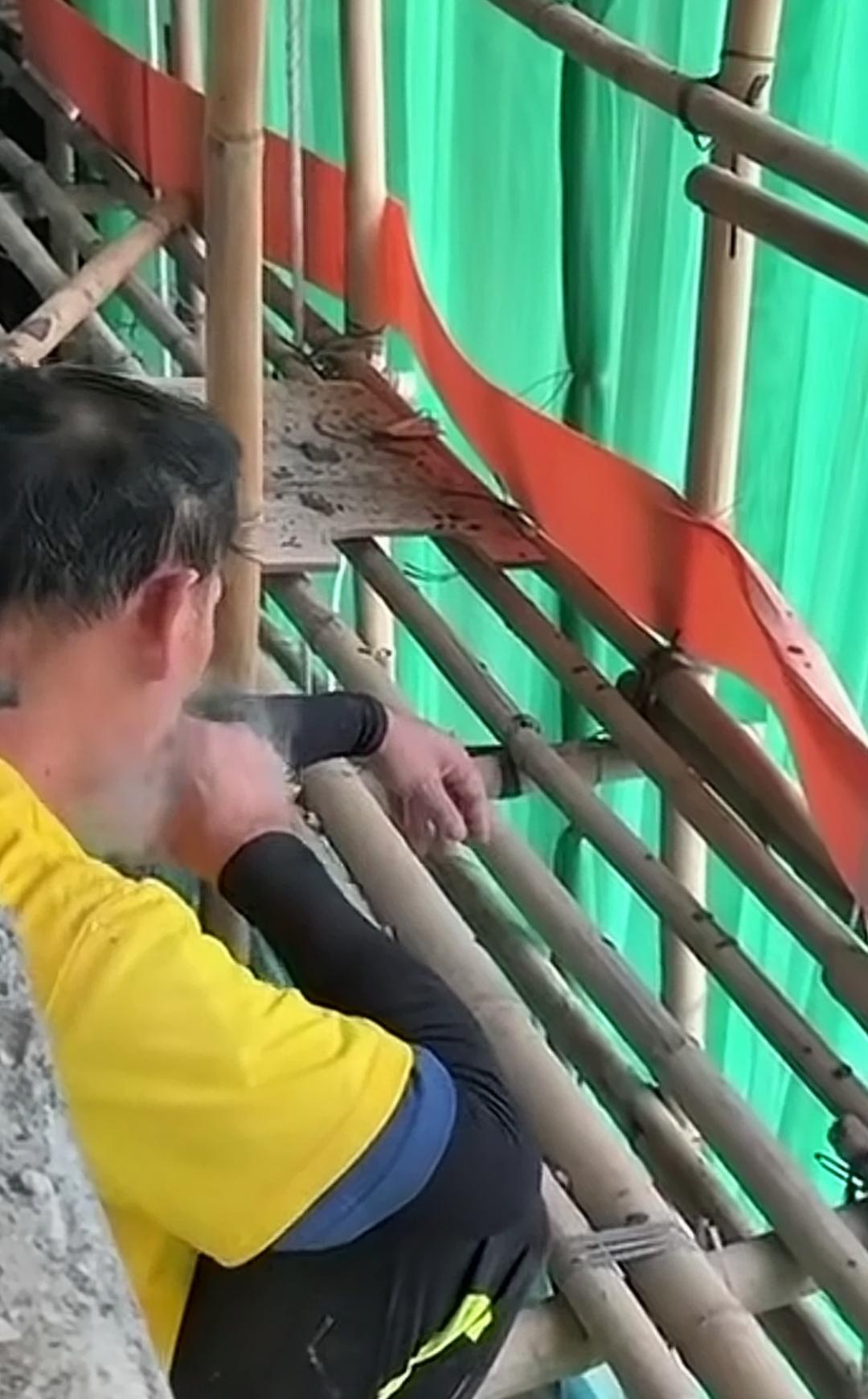 很难想象,就连我们东北县城盖楼的时候,用的都是铁脚手架,而香港的一些楼,修缮时,居然还在用木质支架。 还有人拍到了工人师傅休息的时候,居然在脚手架里面抽烟。 从管理层面,这确实是个难点,不让师傅带烟进工地,很难做到。 干半道活累了,想抽一根,总不能从楼上跑到楼下的空地去。 只能躲到某个角落里偷偷的抽。 这些都会留下隐患。 加强工地管理并不是一句空话,需要公司有严格的管理制度和执行人员。