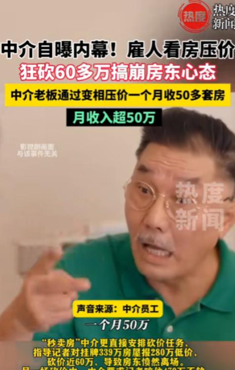 缺大德了!上海徐汇区的周先生最近碰上了糟心事,自己挂339万的房子,中介带着一波又一波人来看房,本以为很快就能成交,结果折腾了半个月,愣是被压到280万,差点就亏了近60万。 这事儿说出来你可能不信,但现实中还真就发生了。 周先生一开始对中介是挺信任的。 毕竟是知名中介,口头承诺说肯定能卖个好价钱,还拍着胸脯保证两周内搞定。 头几天确实热闹,一天能来好几拨人看房,楼道里进进出出的,搞得邻居都以为这房子多抢手。 本来想这下总算能安心等消息了,但后来发现这些看房的人有点不对劲。 这些来看房的,要么说装修太老气,要么嫌户型不方正,没一个正经谈价格的,张口就是280万,多一分都不肯加。 中介在旁边还一个劲帮腔,说现在市场不行,买家都挑得很,你这价格确实高了点。 周先生心里犯嘀咕,同小区上个月刚成交一套,面积差不多,人家都卖了330万,怎么到自己这儿就差这么多。 后来还是朋友提醒了他,说现在有些中介会找托儿来压价,先把房东唬住,用低价收进来,再高价卖出去赚差价。 周先生这才反应过来,那些看房的人说不定就是一伙的。 他留了个心眼,偷偷录了几段和中介的对话,又找物业查了监控,发现有几个人连续几天都在不同楼层晃悠,根本不像真心买房的。 果不其然,中介看周先生有点松口,马上说有个全款买家,280万当场就能签合同。 周先生直接把证据甩了出来,中介当时脸就白了。 后来一查才知道,这家中介靠这套路,一个月能收50多套房,每套少说赚10万,月入50万跟玩似的。 这事儿不是个例,去年北京就有中介玩阴阳合同,跟买家说做低房价能避税,结果暗地里把差价揣进自己口袋,一套房就赚了30万,最后被住建委通报了。 深圳更夸张,有些中介收“茶水费”,说给20万就能优先选房,实际上就是空手套白狼。 这些操作说白了就是利用信息不对称,把房东和买家都当冤大头。 为什么这种套路能屡屡得手?还是监管有漏洞。 现行的《房地产经纪管理办法》对这种虚假交易界定不清,罚款最多3万,对月入50万的中介来说根本不算什么。 更可气的是,有些中介公司还把“低价收房”当成绩效考核指标,底下的人能不使劲忽悠吗? 那咱们普通老百姓碰上这种事该怎么办?首先得自己做功课,去政府备案平台查查同小区的成交价,心里有个数。 其次,跟中介打交道别光听口头承诺,该录音的录音,该录像的录像,真出问题了这些都是证据。 最后,选中介得看口碑,那些上来就拍胸脯保证的,反而要多留个心眼。 现在深圳已经在试点区块链房产交易平台,所有价格和流程都记在链上,想改都改不了。 要是全国都推广开来,中介想耍花样就没那么容易了。 说到底,中介本来是帮人解决问题的,现在却成了制造麻烦的,这事儿怎么看都不对劲。 如此看来,要整治中介乱象,光靠消费者自己警惕还不够。 监管部门得加大处罚力度,该吊销执照的就吊销,该拉黑的就拉黑。 中介行业也该好好反思,是时候回归服务本质了,老想着投机取巧,早晚得把自己玩进去。 房子是老百姓的心头大事,一套房可能是一辈子的积蓄。 要是连房产交易都充满套路,那大家还怎么安心过日子。 希望这次周先生的遭遇能给更多人提个醒,买房卖房多留个心眼,别让辛苦钱打了水漂。