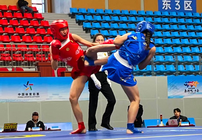 赛场上,对阵双方攻防转换迅速,拳腿组合犀利,摔法运用娴熟,展现出扎实的基本功。作为一项以“拳打脚踢”为主要形式的竞技运动,武术散打也有“刚中带柔”的文化内涵。裁判宣布赛果后,参赛选手及其教练都会相互行“抱拳礼”,诠释着中华武术的独特魅力。