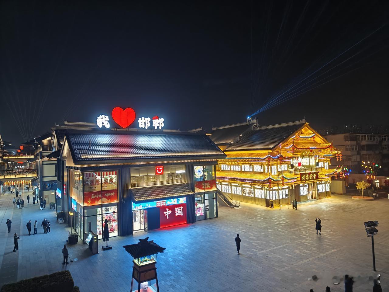 【邯郸道夜游|灯火里的三千年穿越】 华灯初上时踏入邯郸道,才算读懂这座城的古今浪漫青石板路被暖光揉软,飞檐翘角挂着红灯笼,光影漫过砖缝间的岁月痕迹,恍惚间像走进了战国的夜。 “甘丹” 造型的天桥流光溢彩,LED 灯带如绸带串联起南北两区,站在桥上既能望见现代商圈的霓虹,又能透过 “丹” 字景框捕捉学步桥的古朴石灯。成语灯帘在夜色中铺展,“胡服骑射”“负荆请罪” 的发光字牌错落闪烁,每一步都踩着千年文脉。 街角的赵舞惊鸿雕塑定格着古典身姿,回车巷的浮雕在灯影中还原着历史场景,偶尔传来情景剧的台词与铜铃轻响,仿佛时空在此刻折叠。晚风里混着老字号的香气,汉服游人的衣角掠过灯影,无人机表演在夜空勾勒出穿越三千年的奇观,这夜色实在让人沉醉。 原来最动人的夜景,是历史与烟火的双向奔赴!