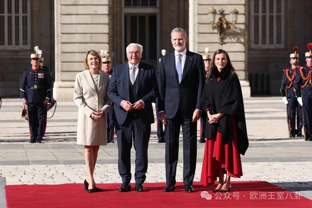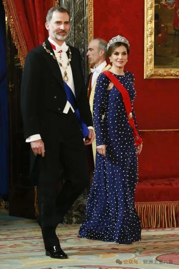 昨天德国对西班牙进行了国事访问,西班牙这一个月接访出访又接访,突然十分热闹咧 重点还是看看西班牙王后莱蒂齐亚的行头 日间是经典红黑配,来自the2ndskinco的不对称红裙和carolina herrera黑斗篷都是老朋友了 夜间则在carolina herrera定制了条新礼服(品牌原版为肉粉色),佩戴老波旁另一顶卡地亚珍珠王冠 继前些天在我国以后,小莱竟然又贡献了一次盘发造型。非要挑刺的确盘得不算太精致,王冠也有点飘,但还是那句话,对发型后进生要以鼓励为主 另外小莱此前戴这顶王冠貌似在2018年的葡萄牙国宴?当时小莱穿的礼服被瓜路戏称为珍珠鸡,现在看其实也有可圈可点之处嘛(最后俩图)