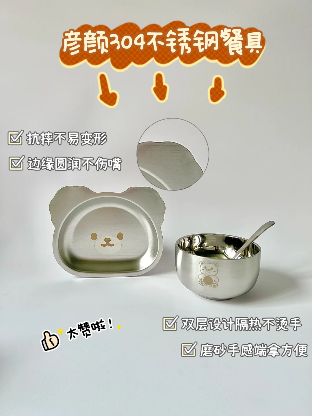 今天还给柒柒准备了新餐具,彦颜家的304不锈钢儿童萌物餐具,碗勺套装只要💰14.9,铁腕双层设计不烫手,小熊餐盘好可爱啊,简直长在了我审美点上,喜欢喜欢~💕边缘圆润不伤手,食品级304也不怕宝宝啃咬👍